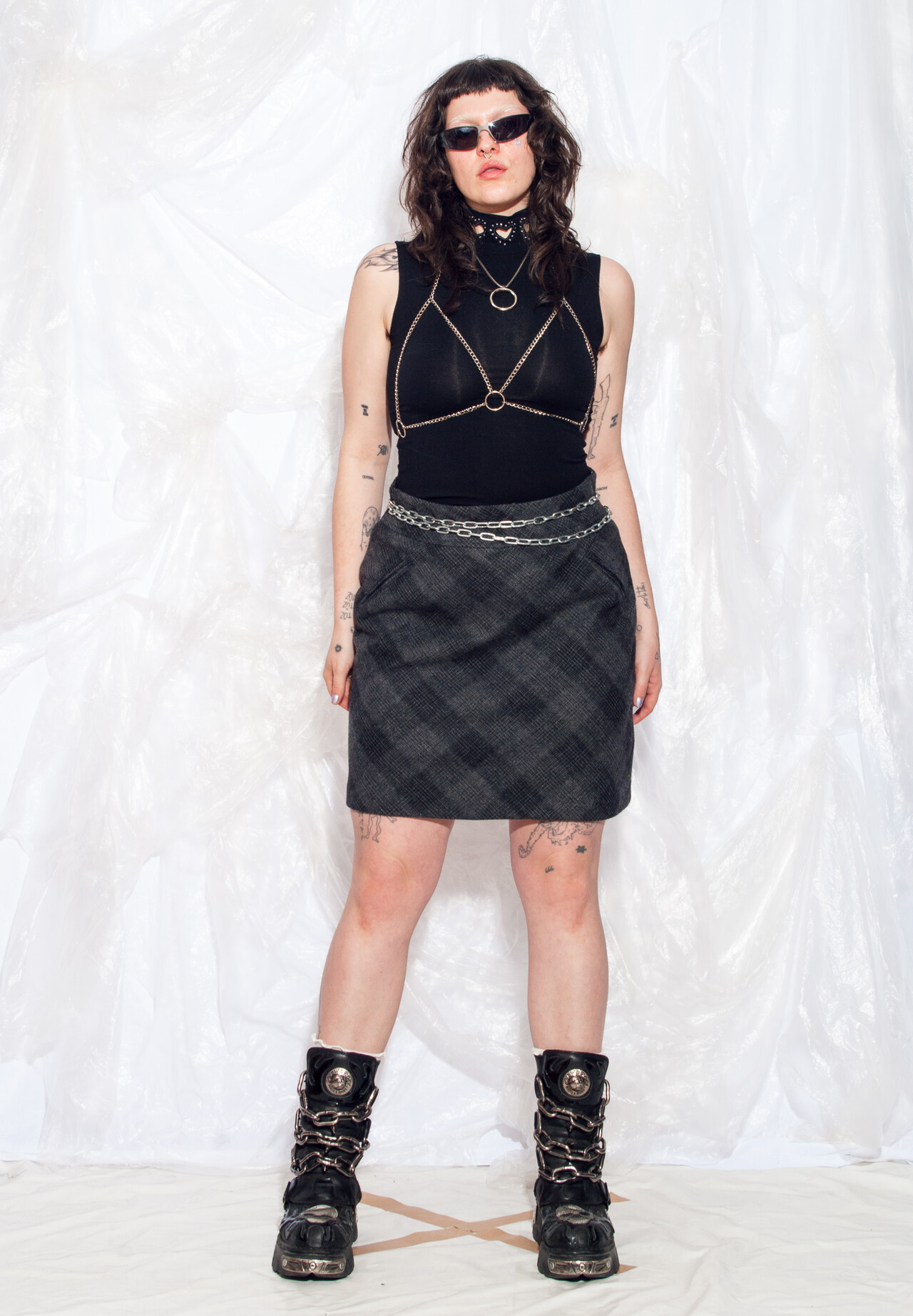 Be the first to review “Vintage Y2K Mini Skirt in Plaid Grey Wool Blend” Cancel reply