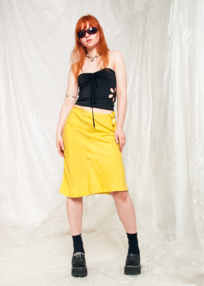 This Y2K vintage micro skirt is straight out of the early 2000s and the height of fashion.