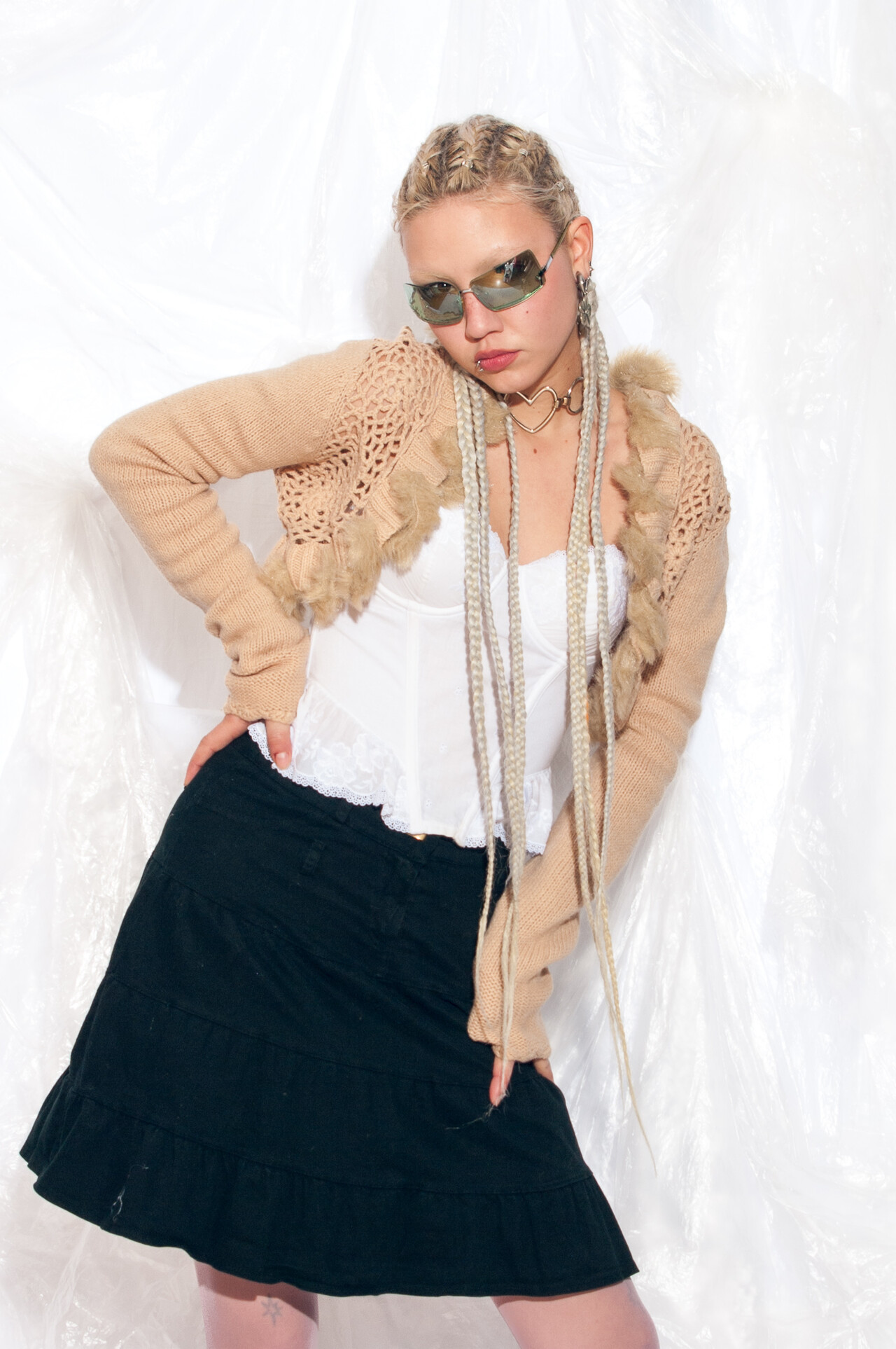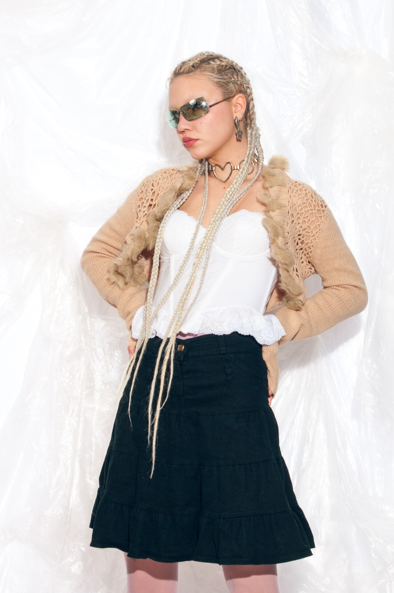 This Y2K vintage knit cardigan is the perfect blend of cosy and quirky. With real fur trim, crocheted lace details and a cropped style, it’s the bolero you never knew you needed (but now can’t live without).