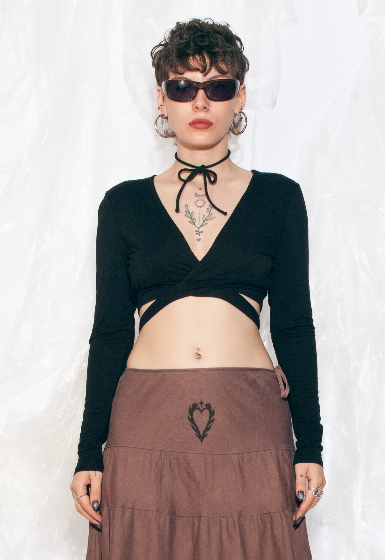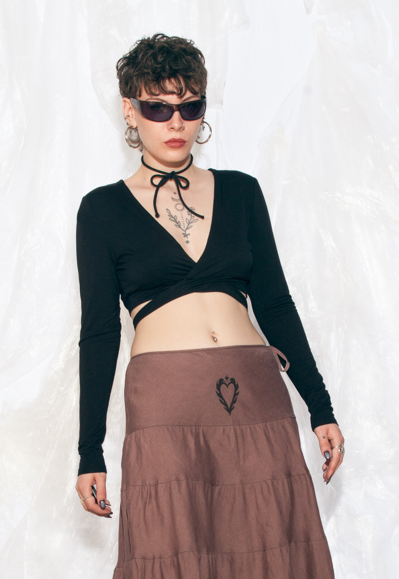 This Y2K vintage wrap around top by Morgan de Toi will have you feeling like you’re about to star in your very own early 2000s teen drama, complete with all the lack lace angst.