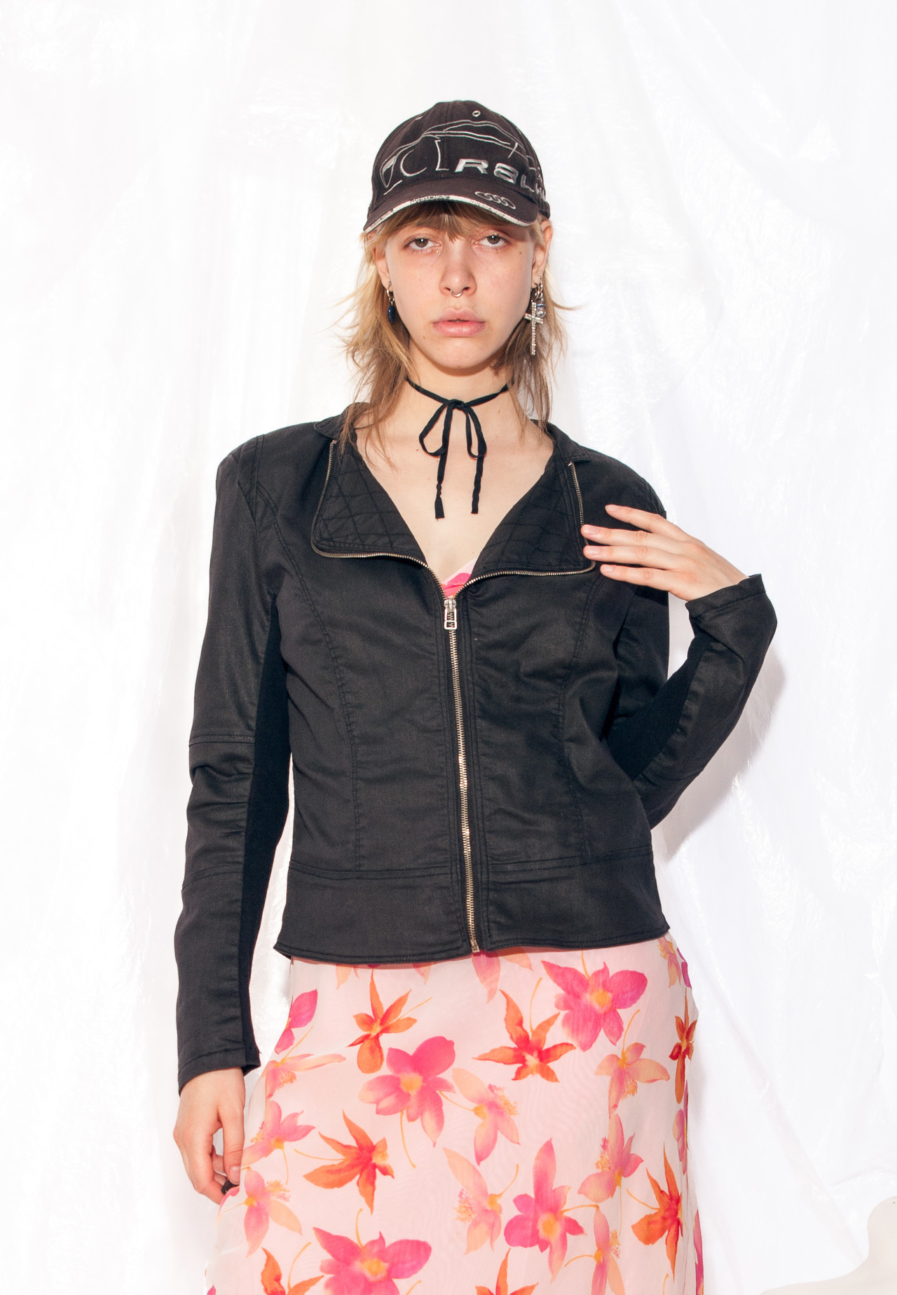 Vintage Y2K Moto Racing Jacket in Black Cotton