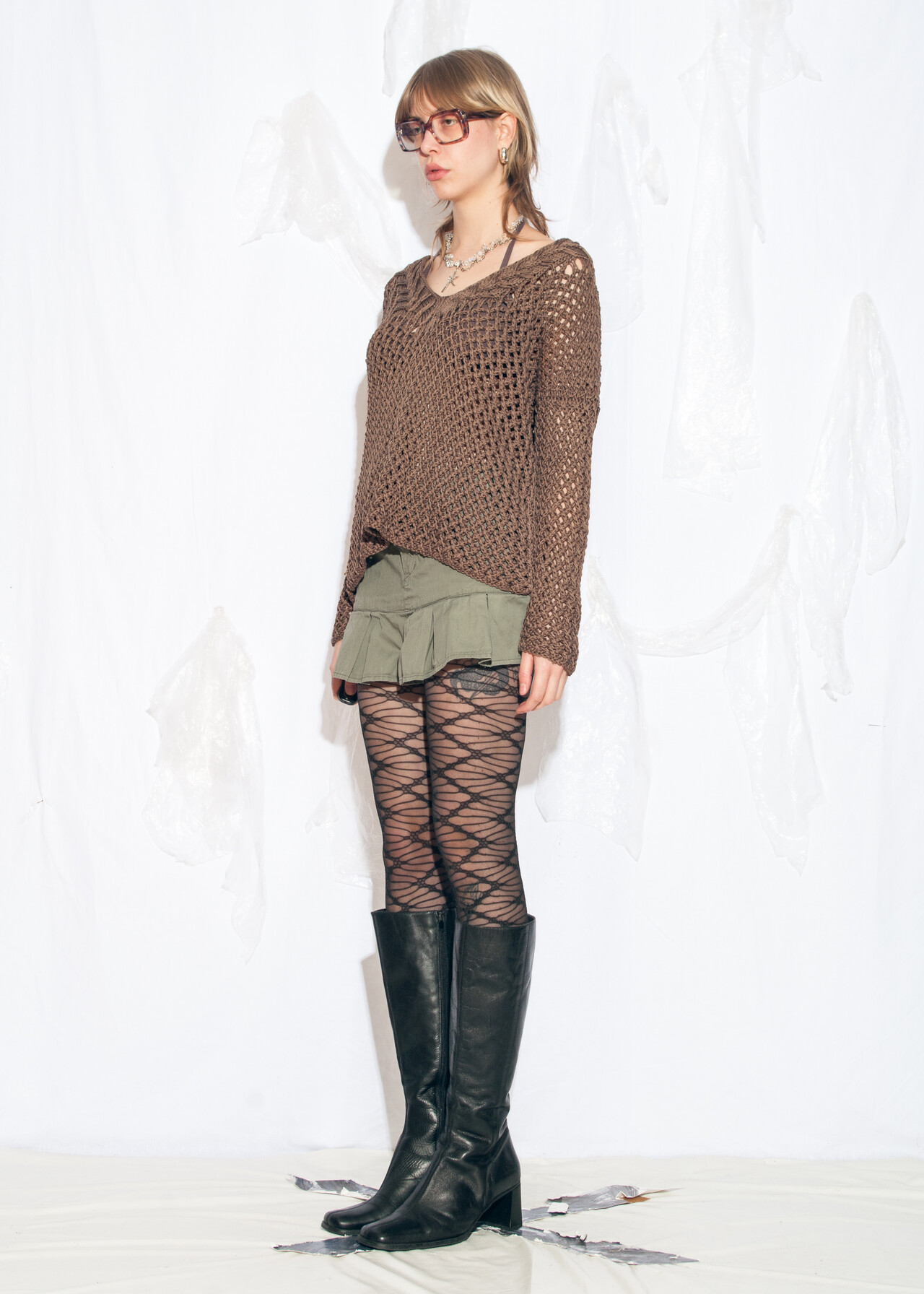 Tags: 2000s vintage style, chunky knit pullover, fairycore grunge, net knitted jumper, oversized sweater, whimsigoth