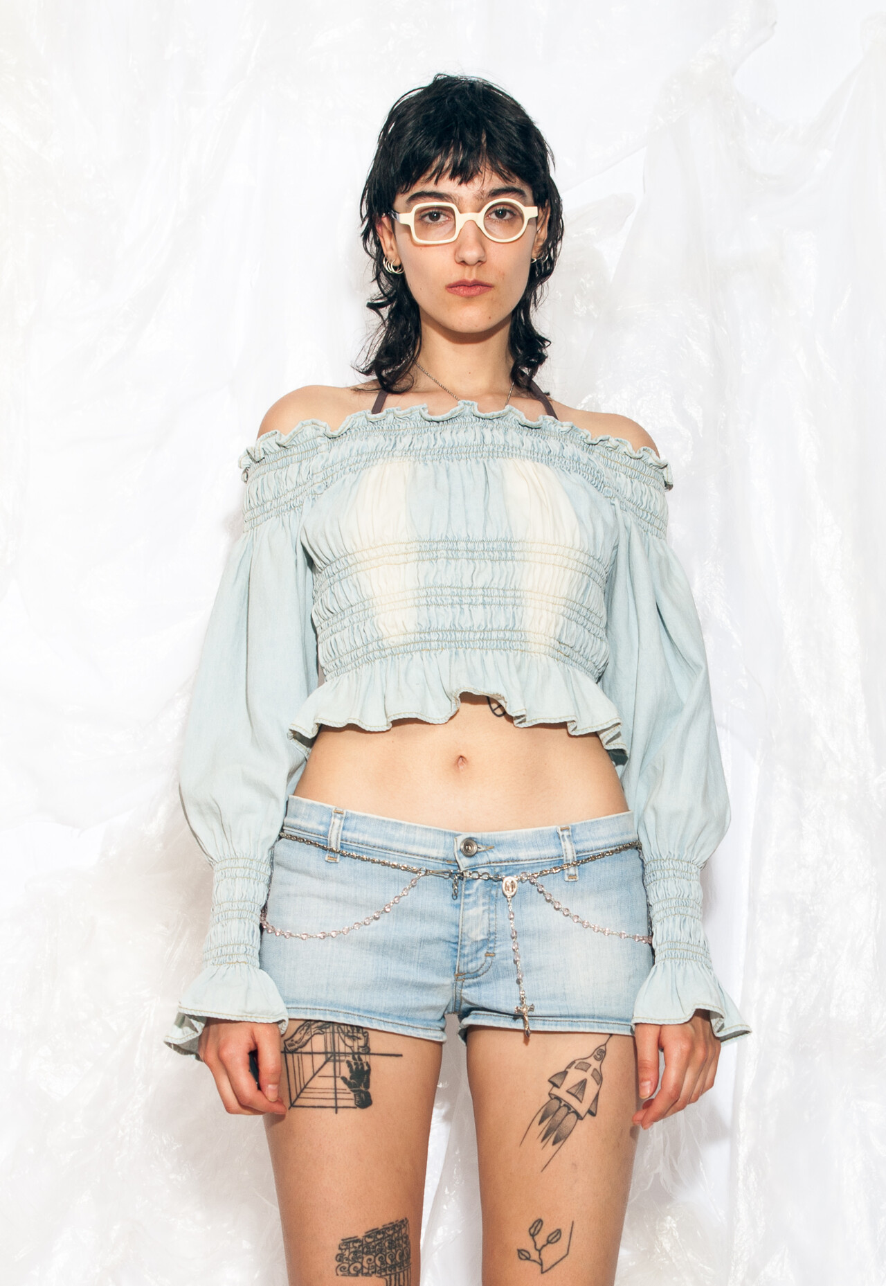 Be the first to review “Vintage Y2K Off Shoulder Top in Blue Denim” Cancel reply
