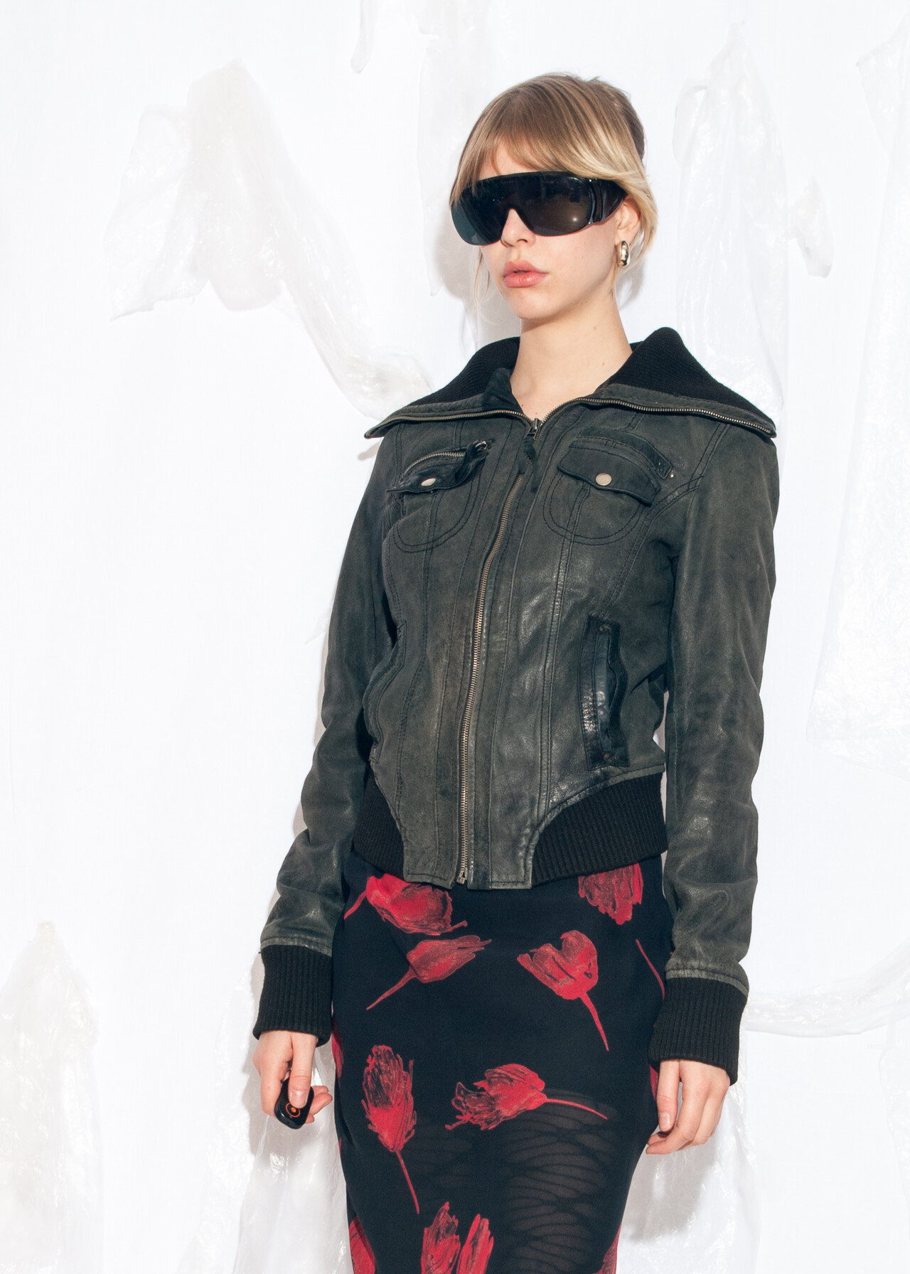 This Y2K vintage fitted leather jacket is your ticket to reliving the days when leather was the ultimate shield against bad fashion choices.