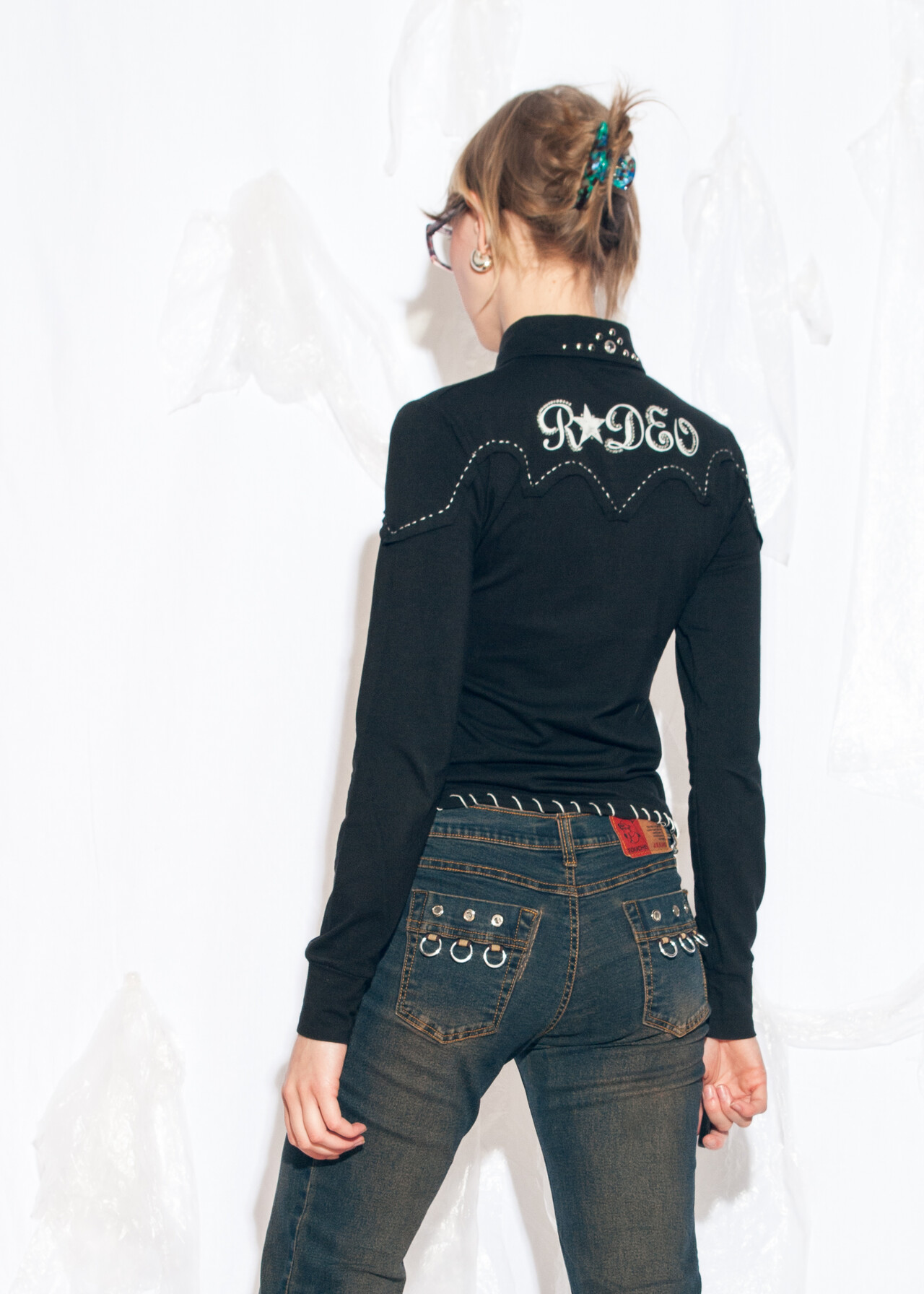 Be the first to review “Vintage Y2K Rodeo Studded Top in Black” Cancel reply
