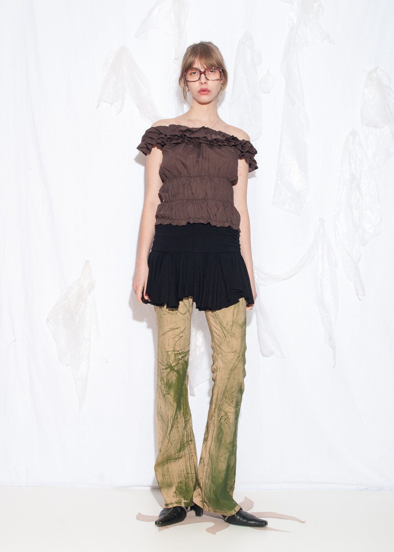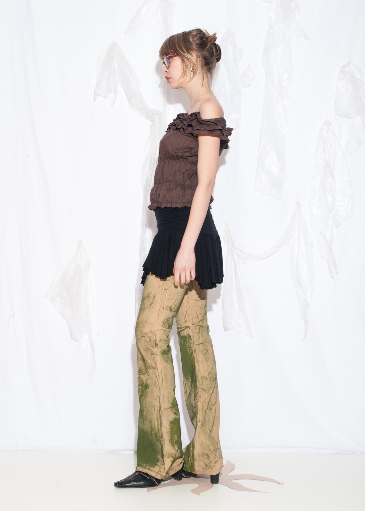 Tags: 2000s vintage style, goblincore, off shoulder blouse, ruched top, whimsigoth
