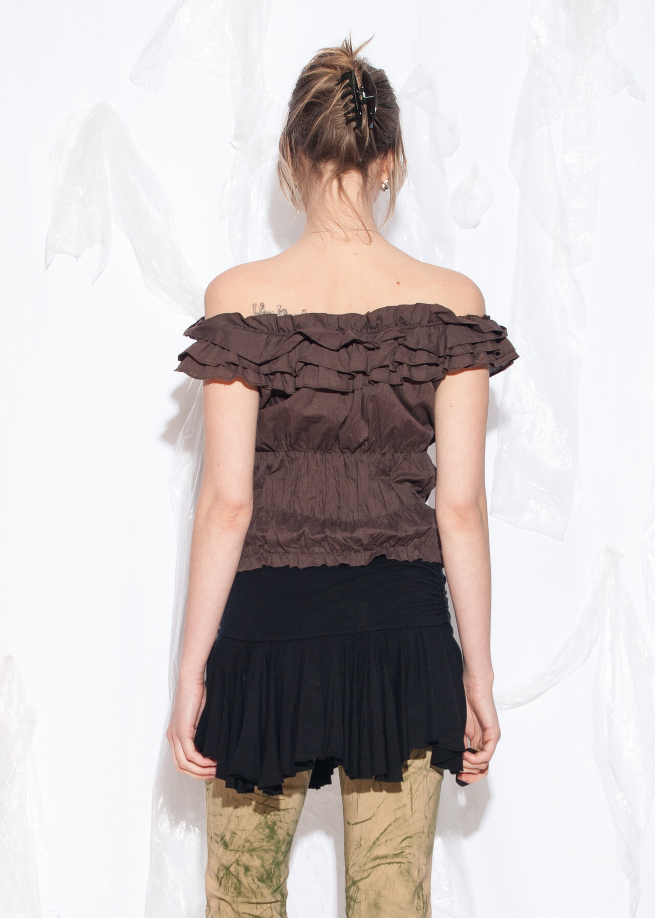 Be the first to review “Vintage Y2K Ruched Off Shoulder Top in Brown” Cancel reply