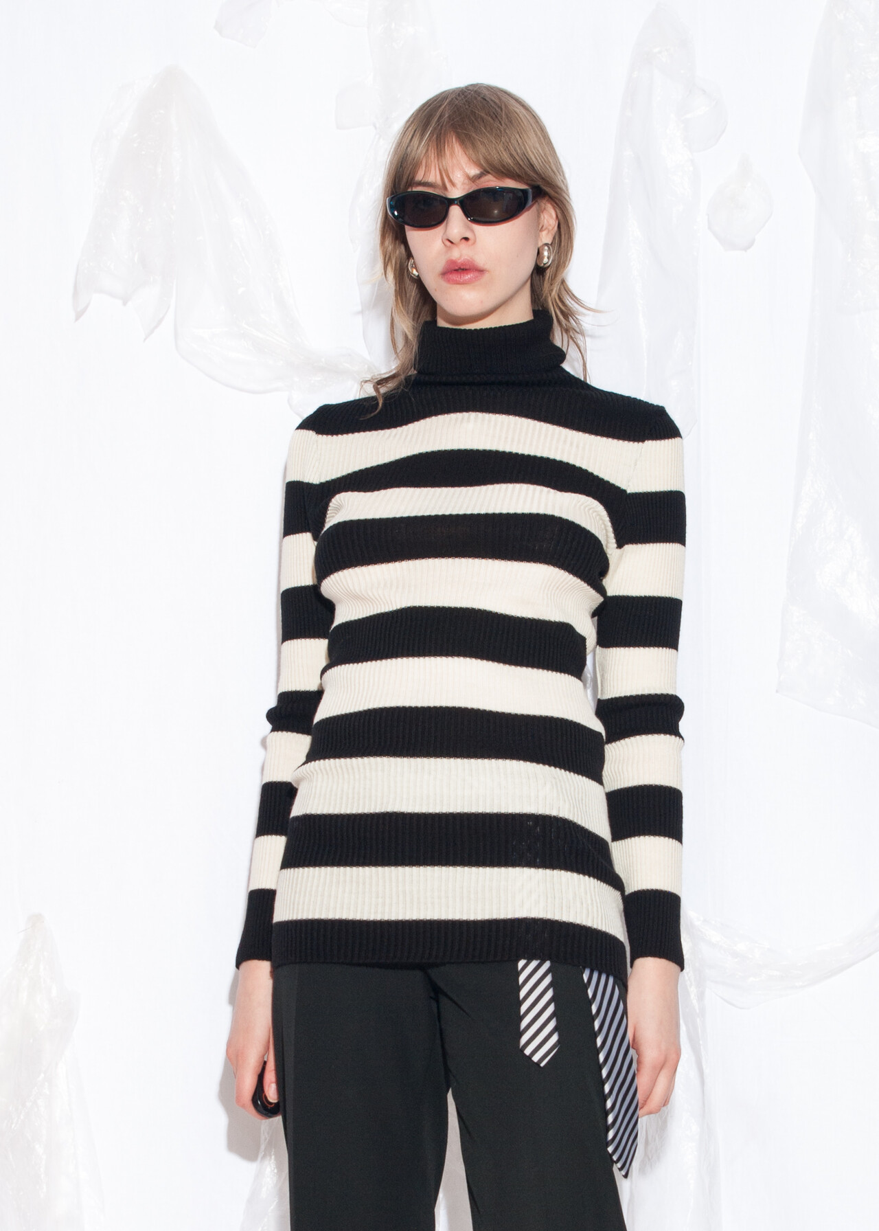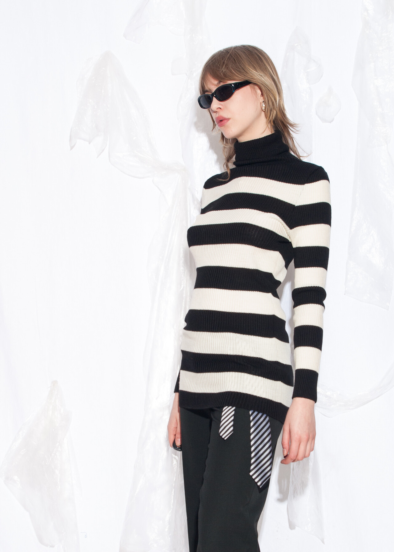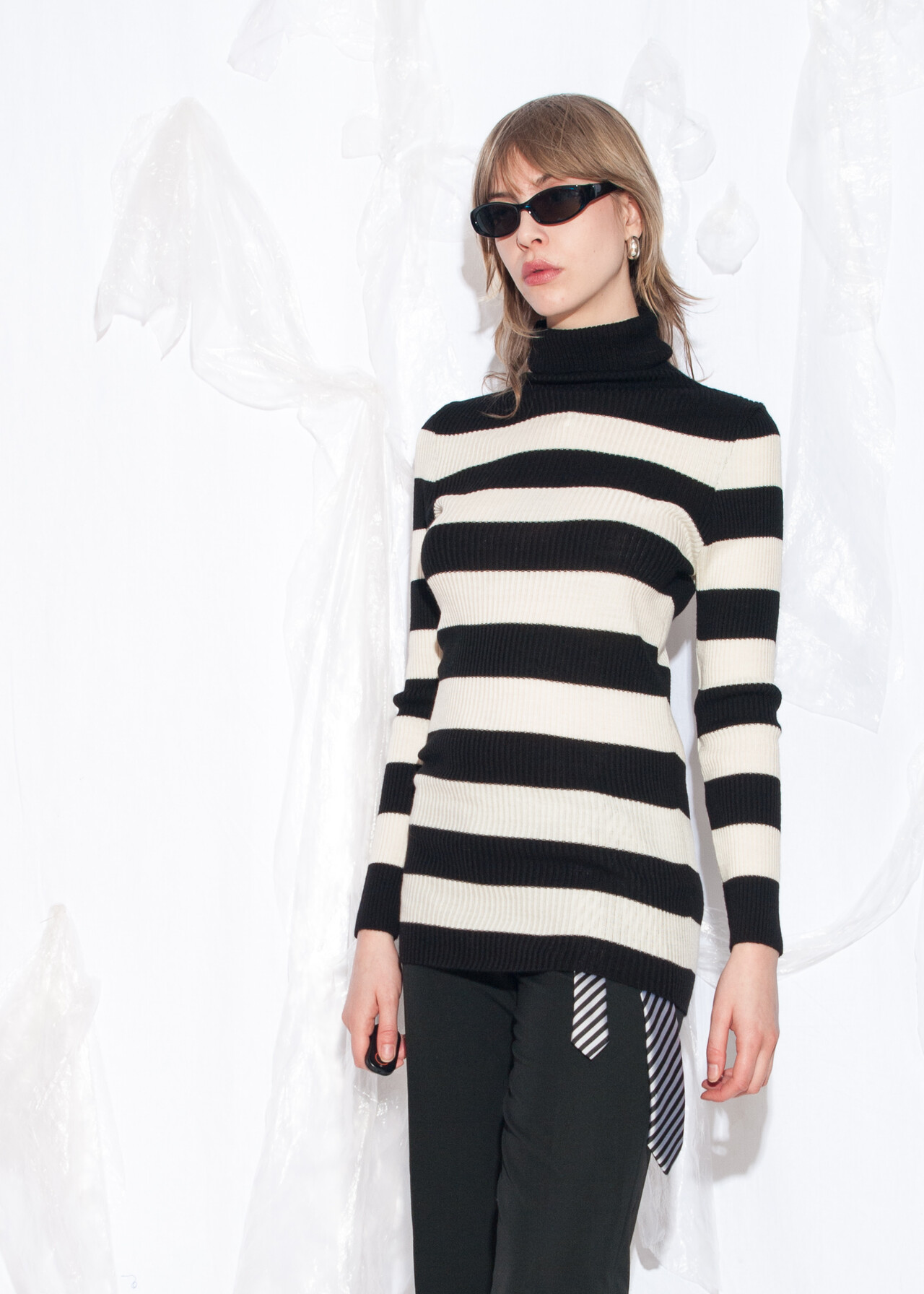 This Y2K vintage knit jumper is the turtleneck sweater you never knew you needed, ready to transport you back to the era of grunge and striped tops with more flair than a dial-up modem at full speed.