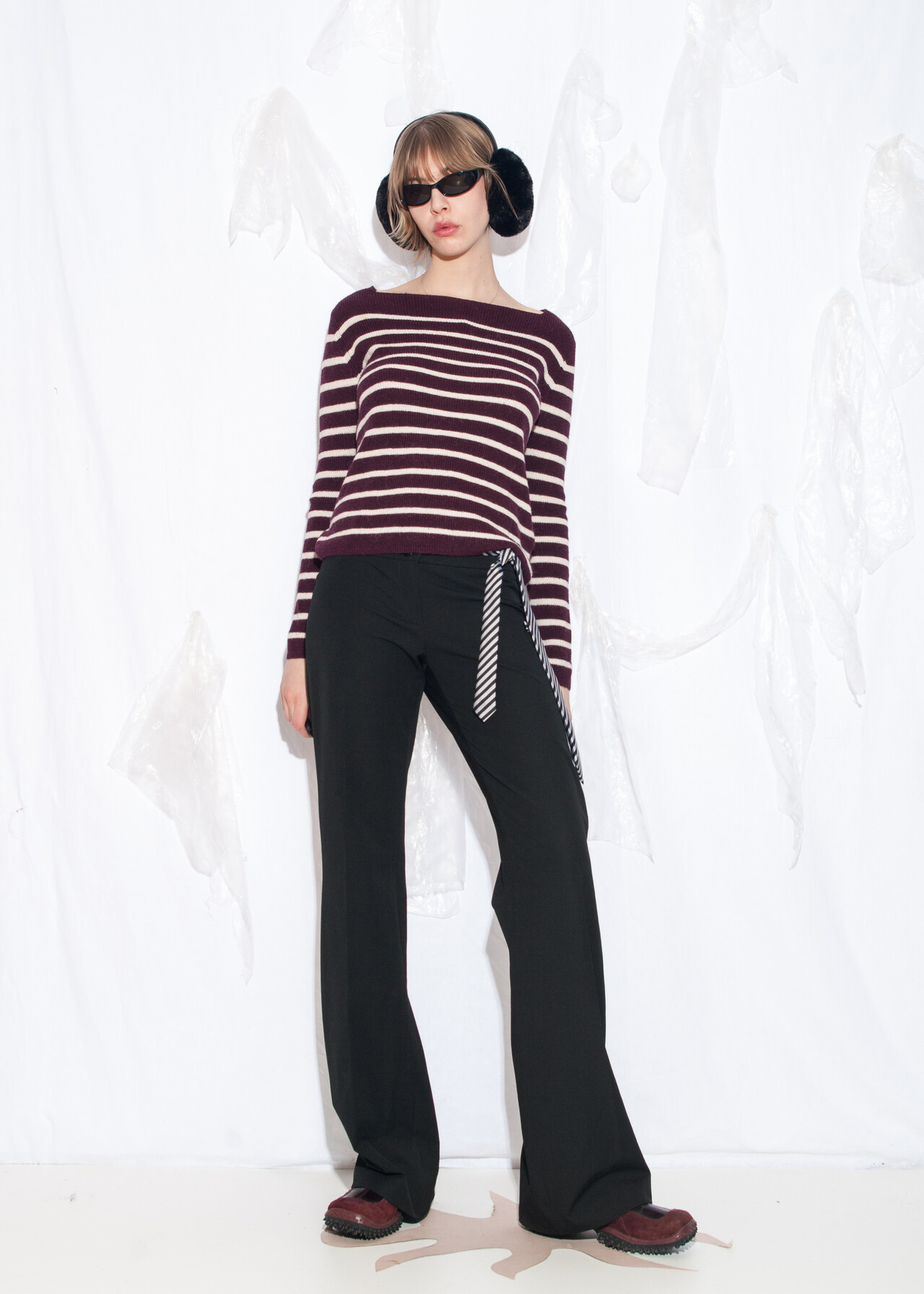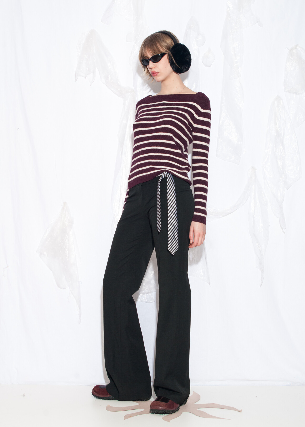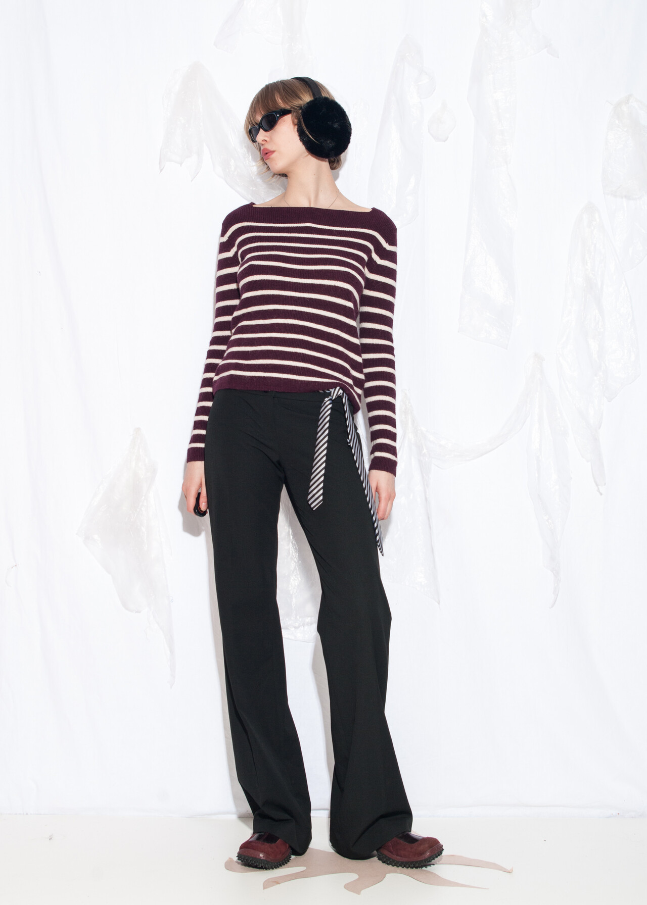 Tags: 2000s vintage style, soft knitted jumper, striped sweater, y2k cyber grunge