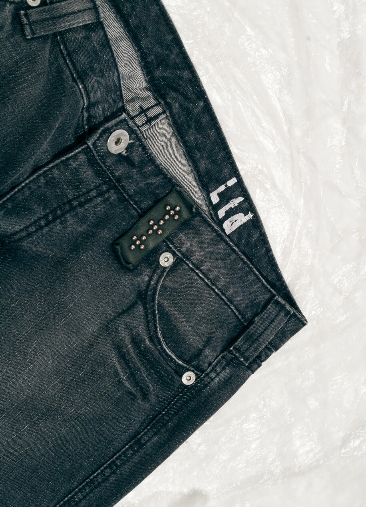 Vintage jeans 90s reworked crop grunge black denim trousers