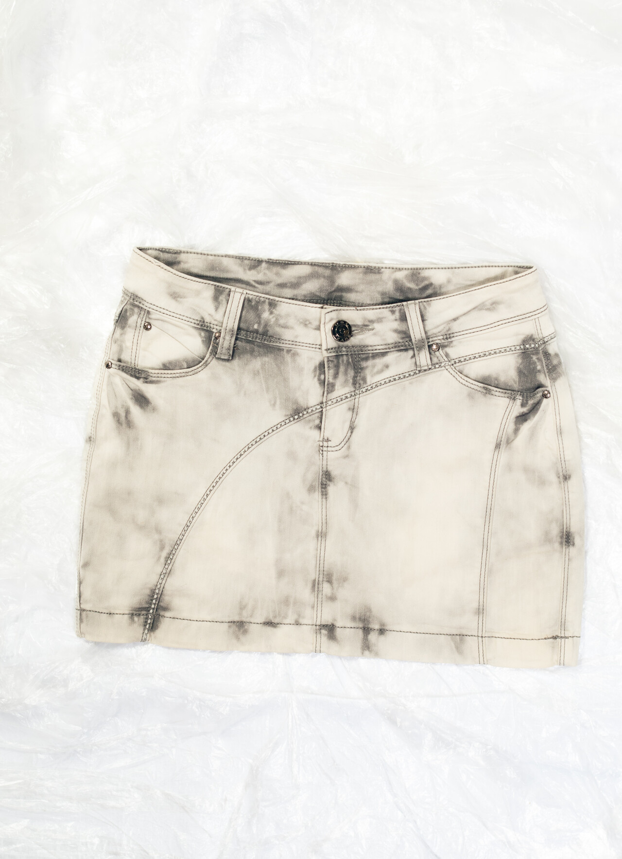 Vintage Y2K Tie Dye Skirt in Off White Denim