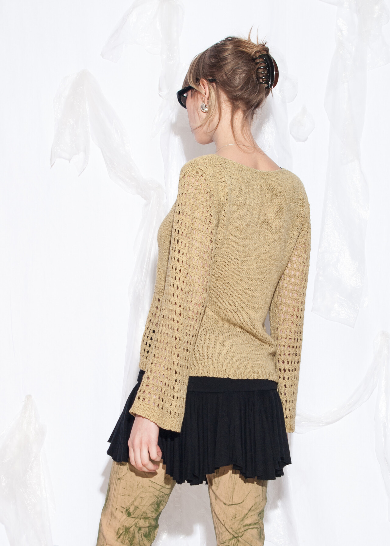 Vintage knit jumper 90s yellow openwork crocheted sweater