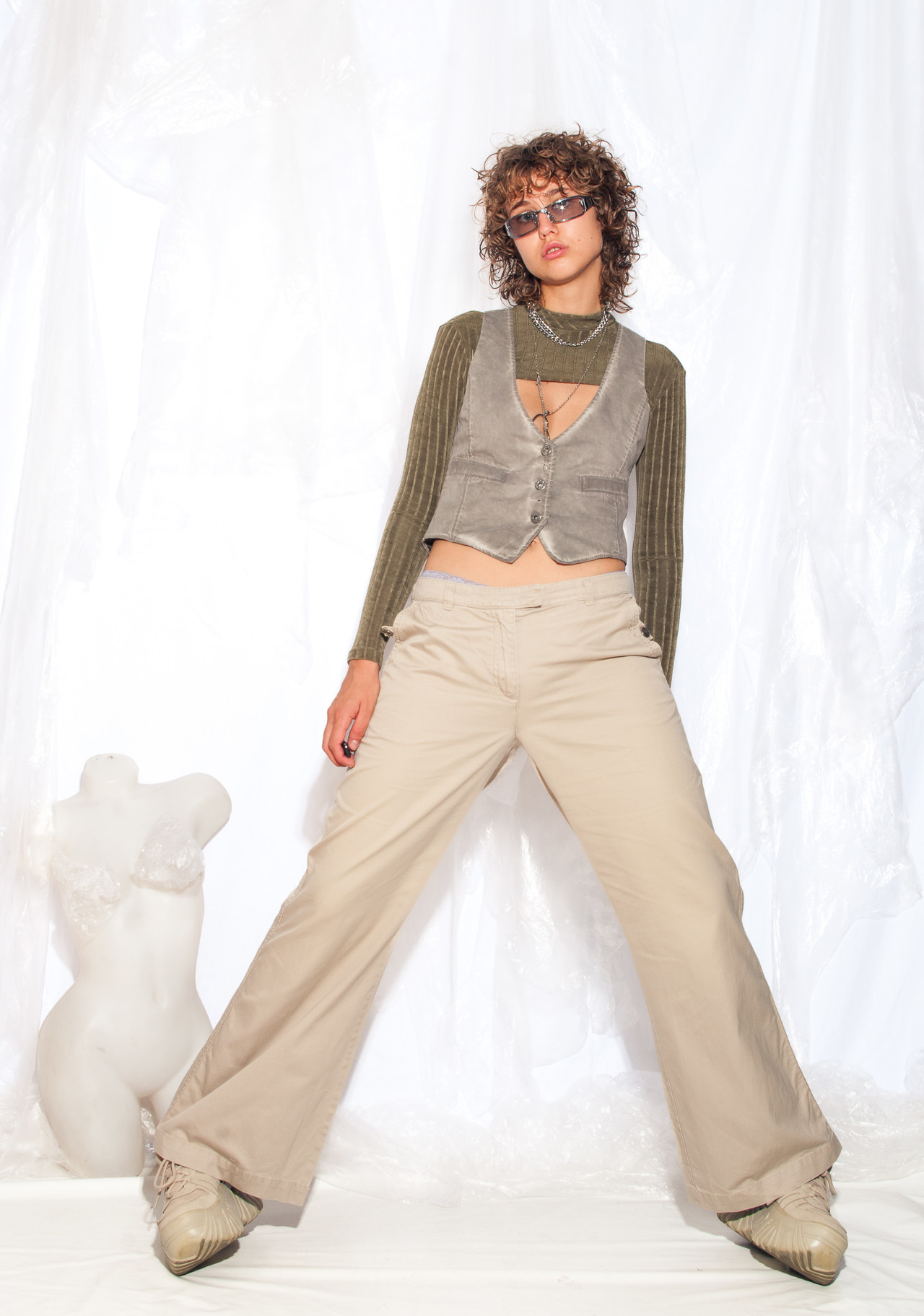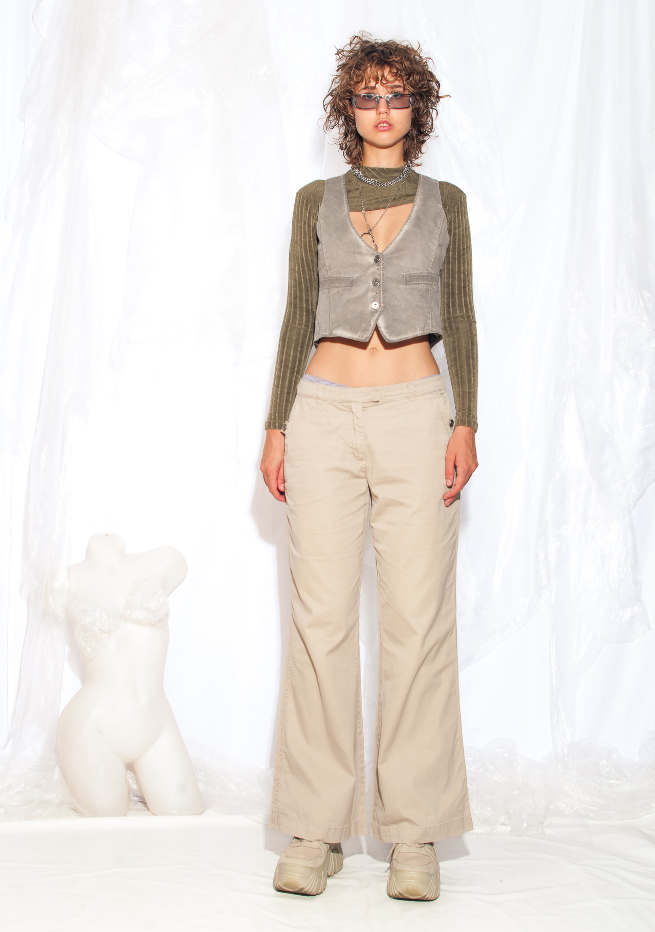 These wide-leg Y2K vintage trousers are like a fashion time warp. Put them on and get ready to groove to the sounds of Britney Spears while embracing the delightful flares that made the early 2000s oh-so-unique.