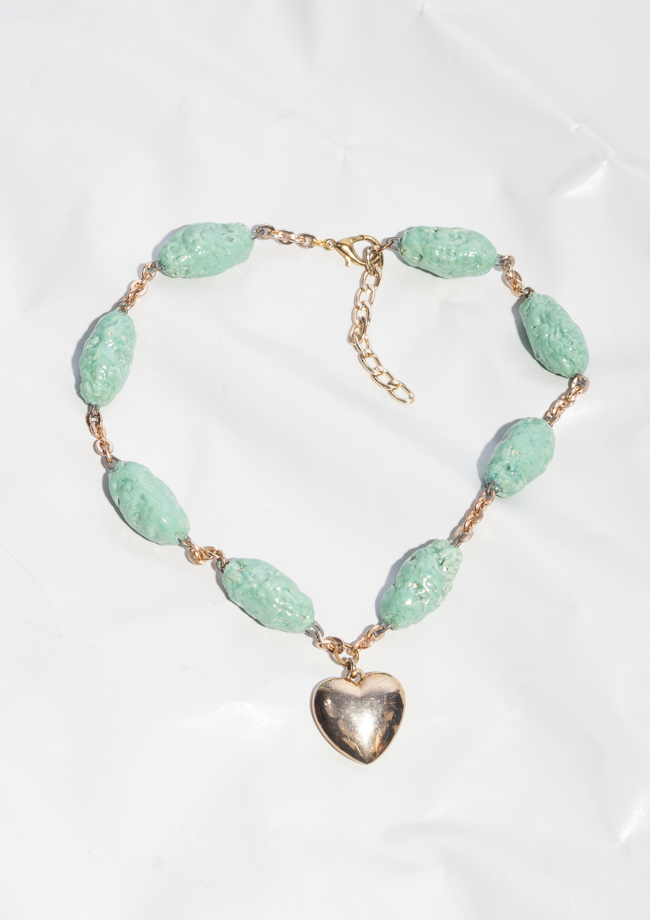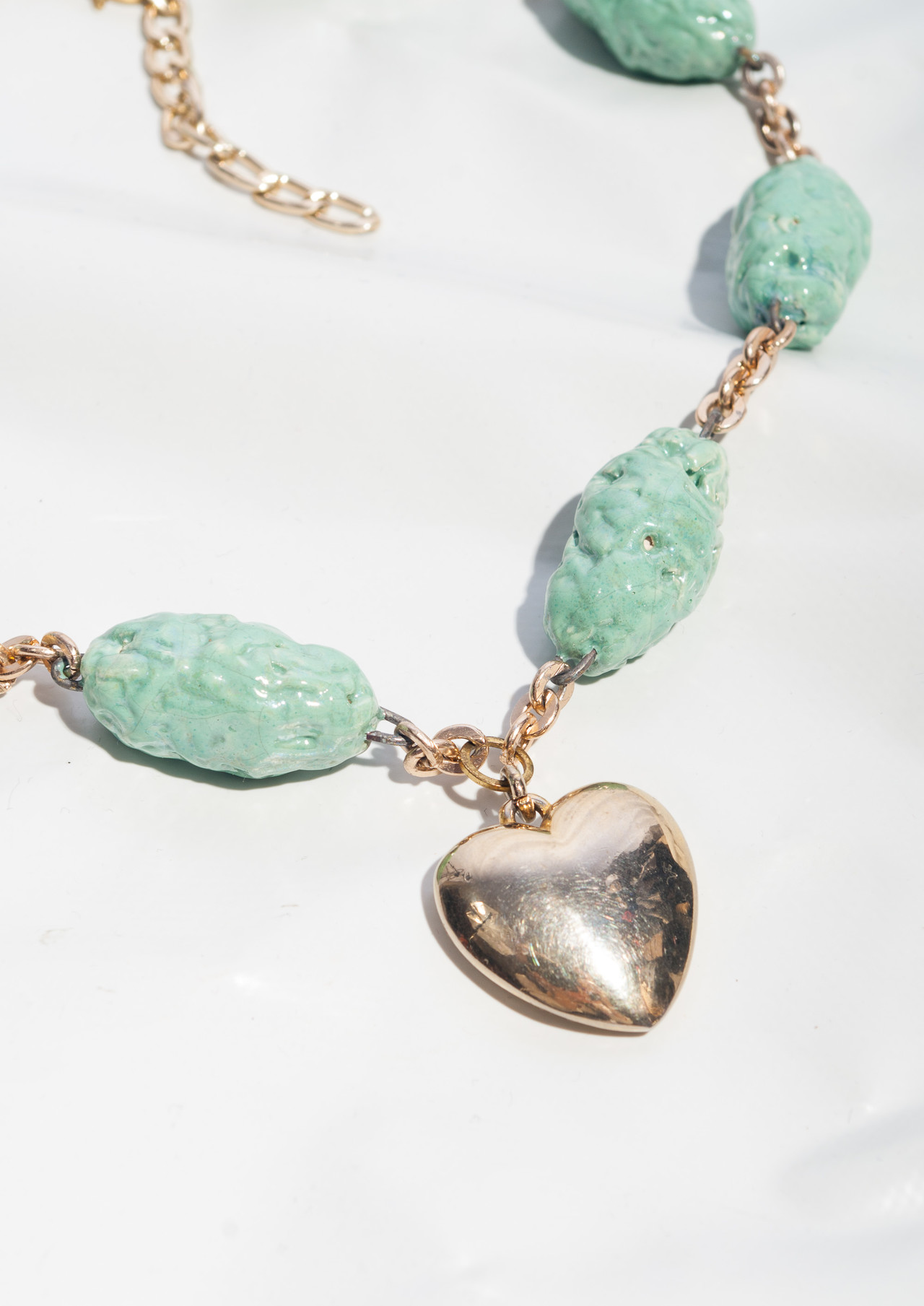 Be the first to review “Reworked Necklace 80s Vintage Ceramics Bead Y2K Gold Heart” Cancel reply