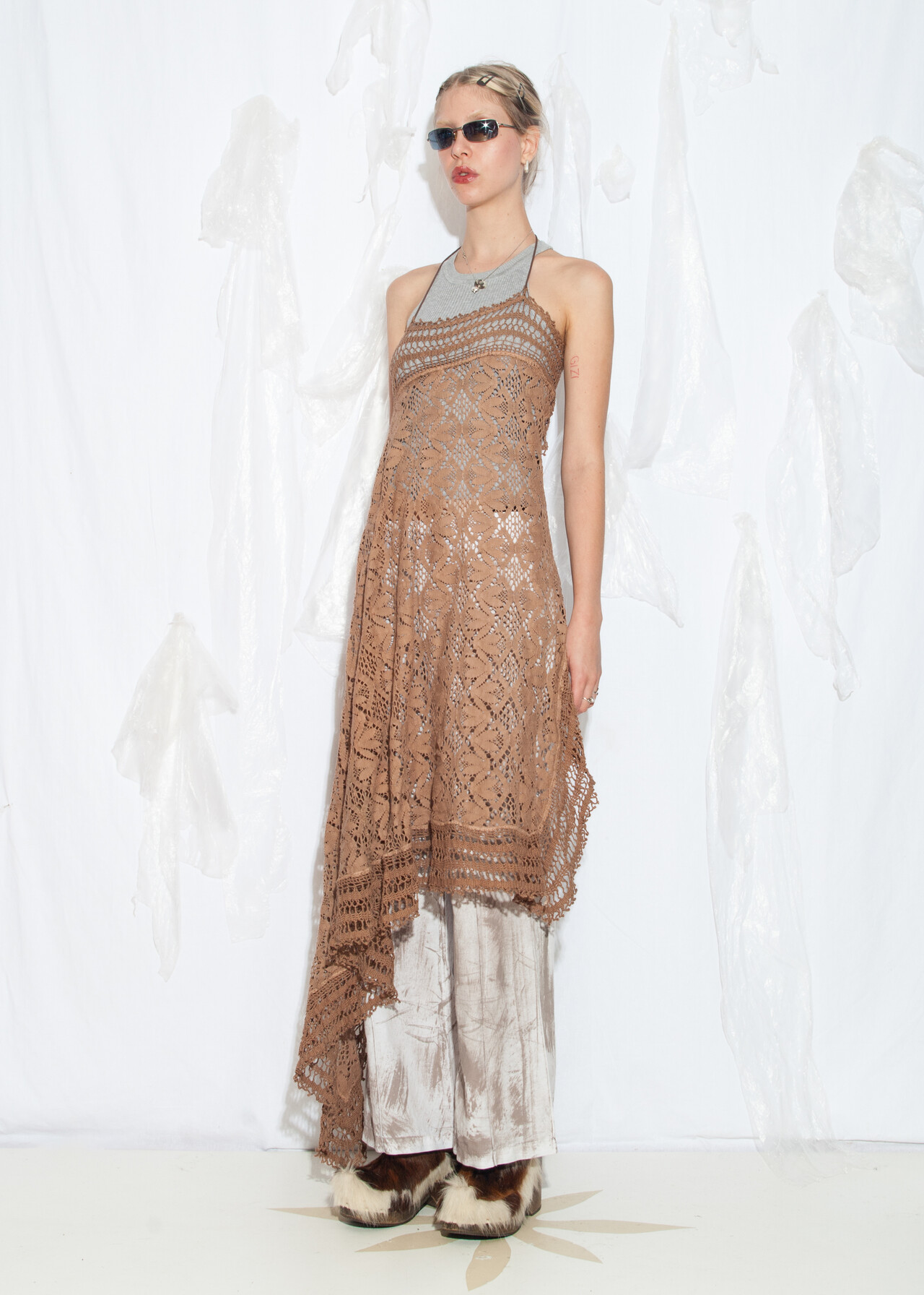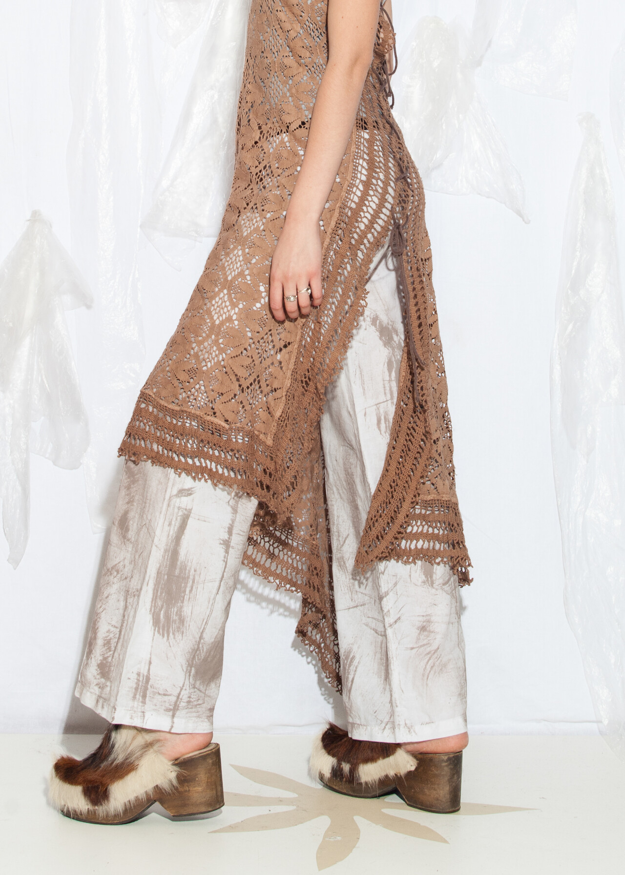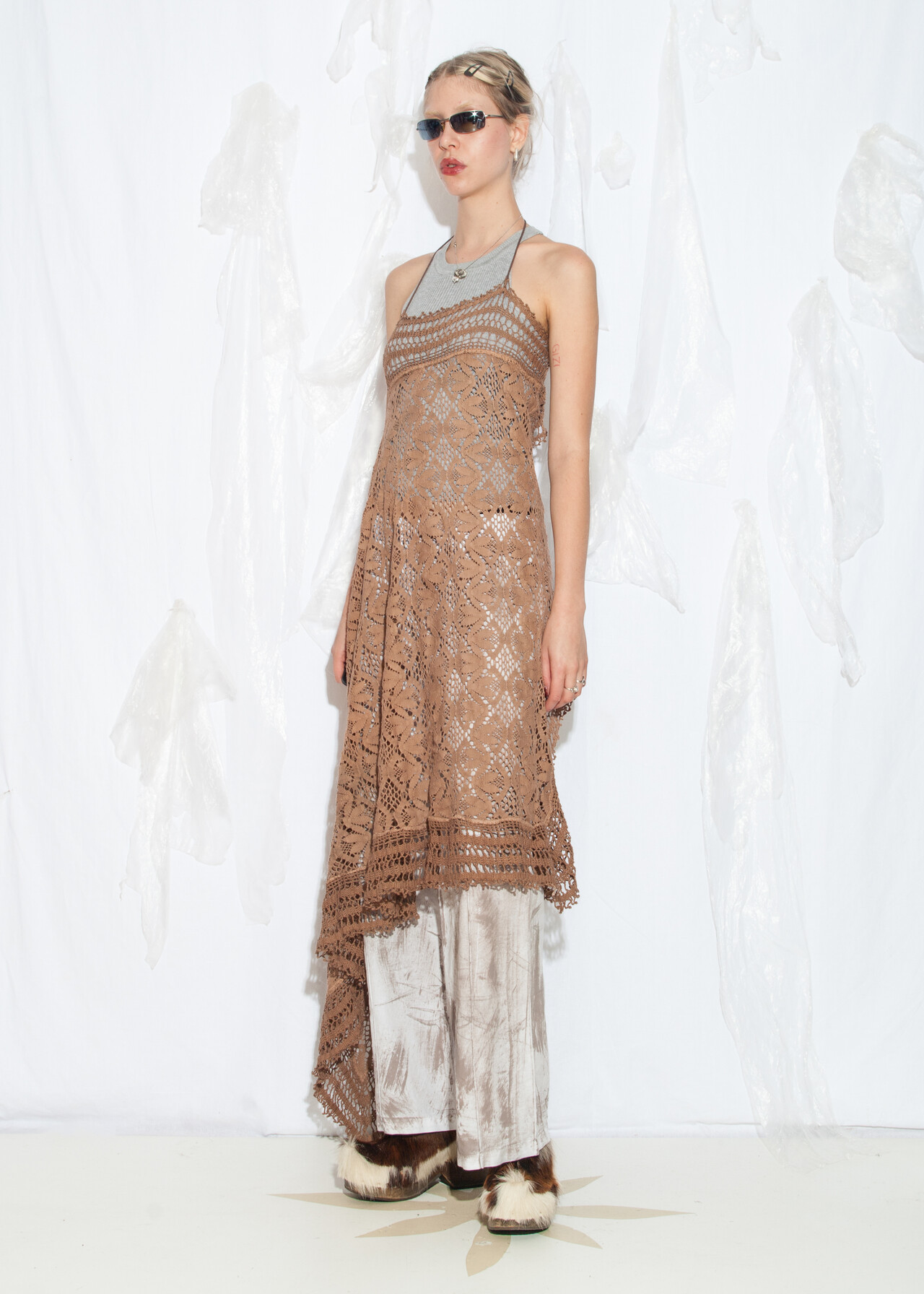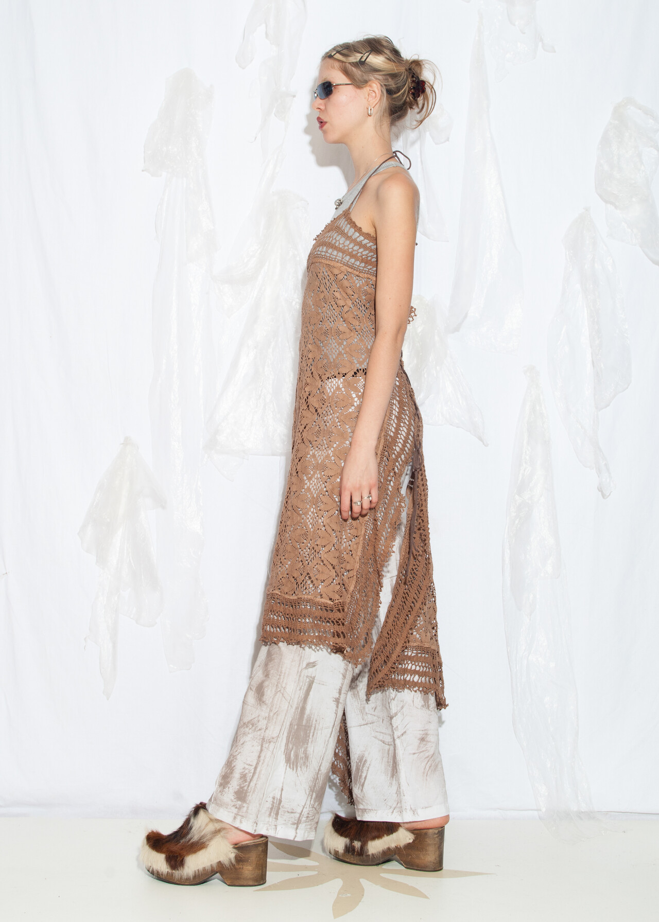 Reworked Vintage 60s Crochet Lace Dress in Brown