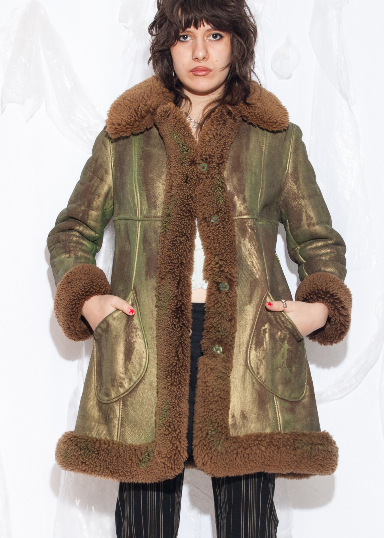 This 70s vintage shearling coat is like wearing a hand-painted masterpiece that keeps you warm while channeling your inner Penny Lane vibes.