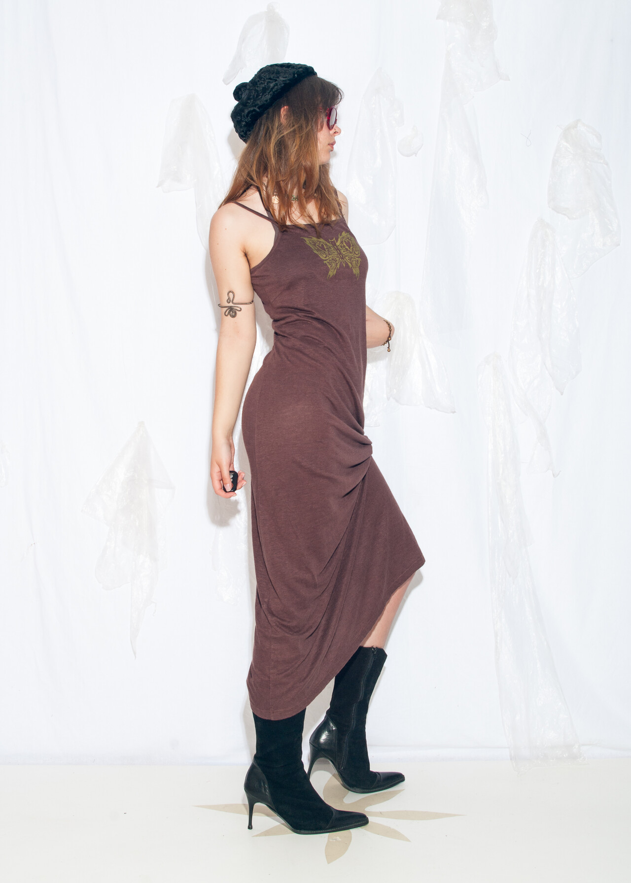 Tags: 90s vintage fashion, butterfly print, linen maxi dress, reworked, whimsigoth, y2k style clothing