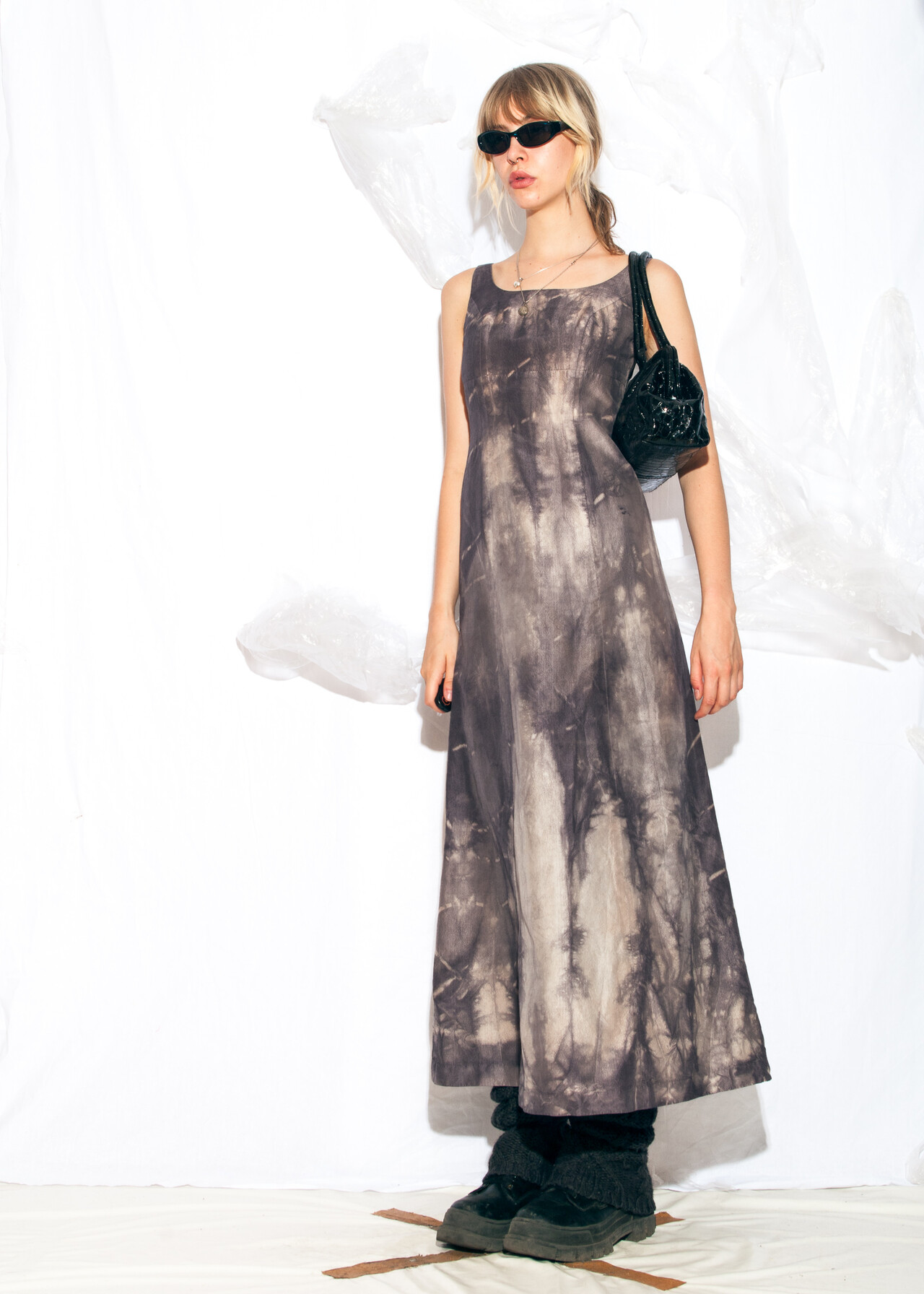 Reworked Vintage Tie Dye Maxi Dress in Grey
