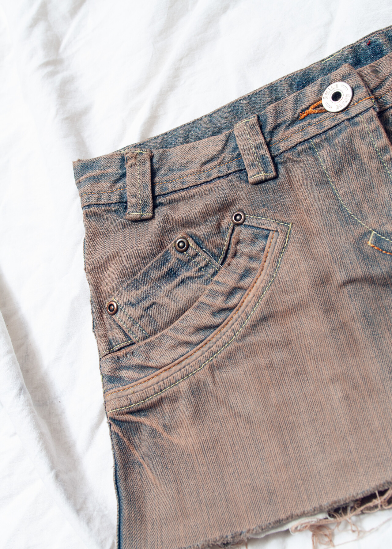 Reworked Vintage Y2K Denim Micro Skirt in Mud Washed Brown and Blue