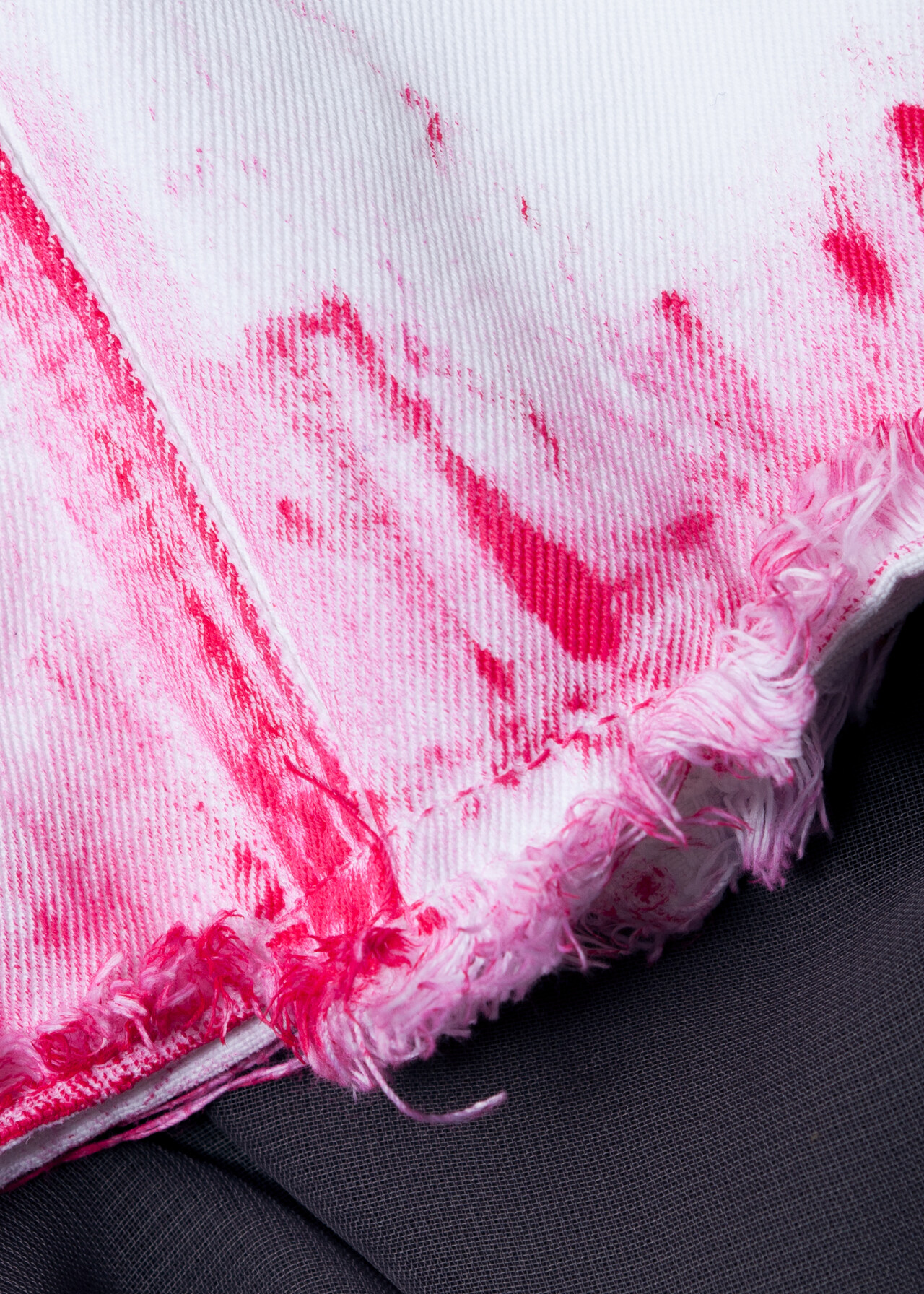 Vintage Denim Skirt 80s Reworked Half Crop Acid Wash Jeans