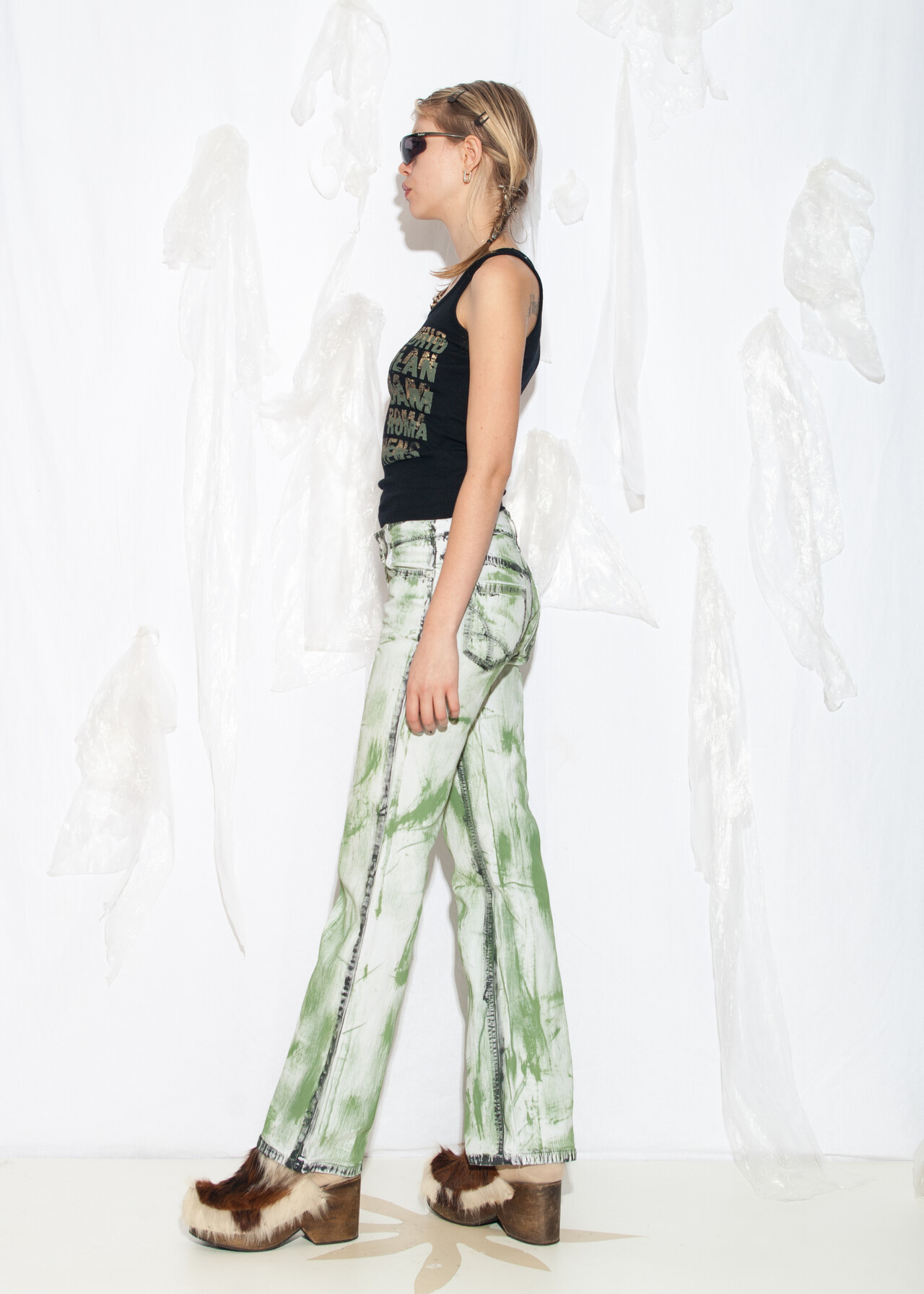 Be the first to review “Reworked Vintage Y2K Flare Jeans in Hand-Painted Green and White” Cancel reply
