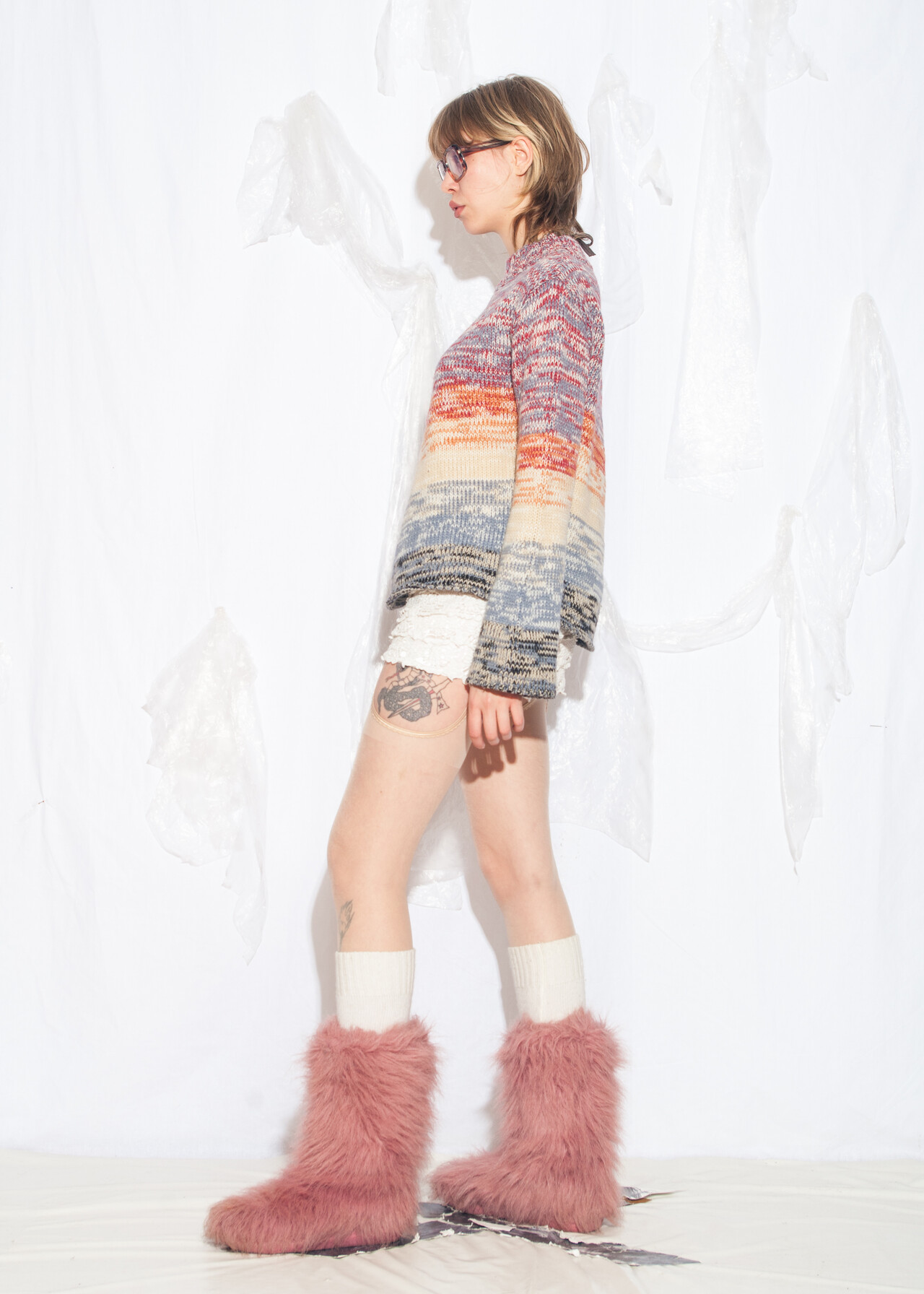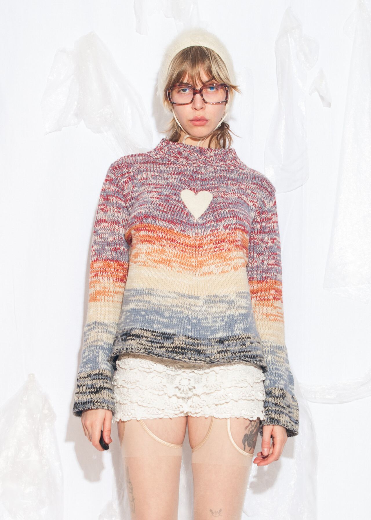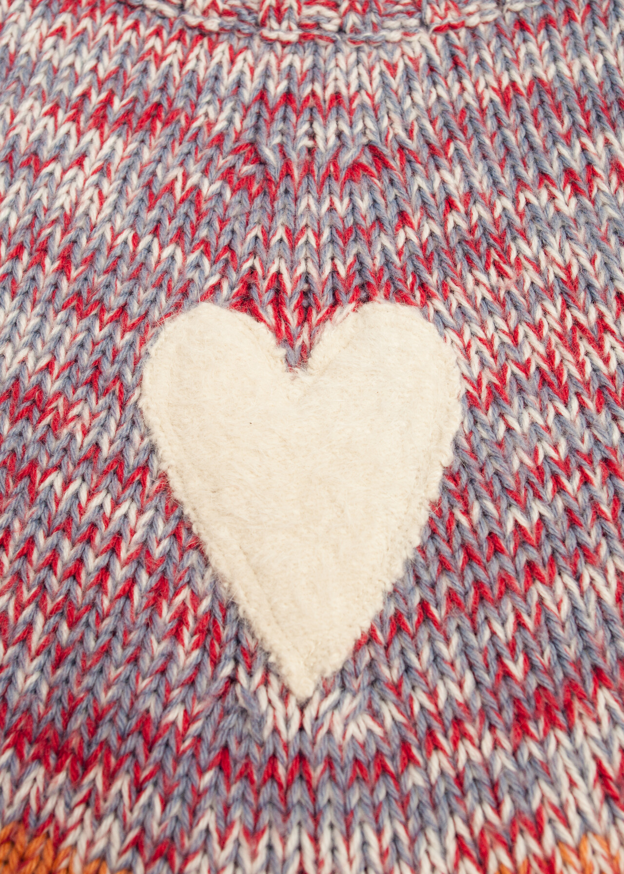 Tags: flare sleeve sweater, heart jumper, rainbow knitted, reworked, wool blend