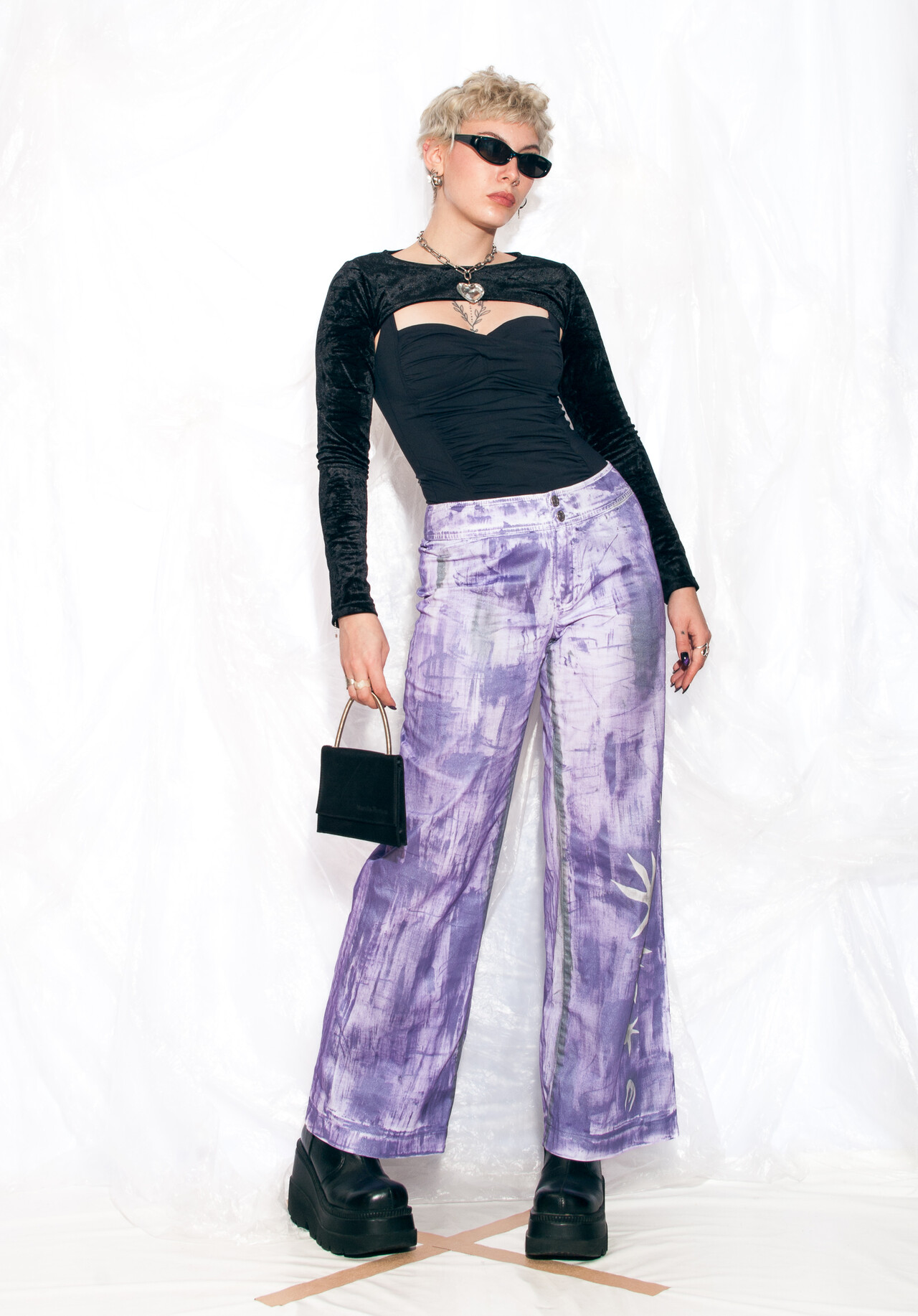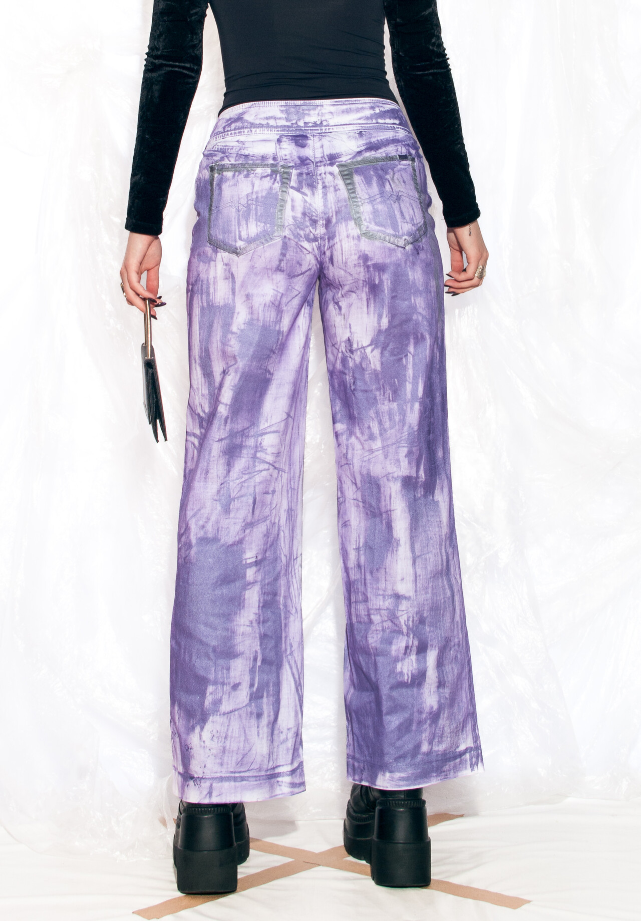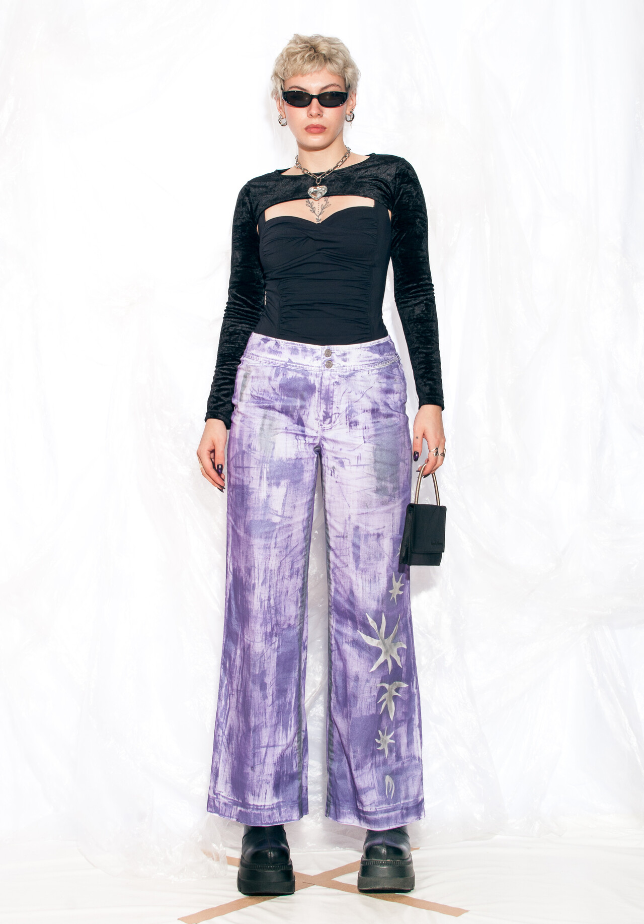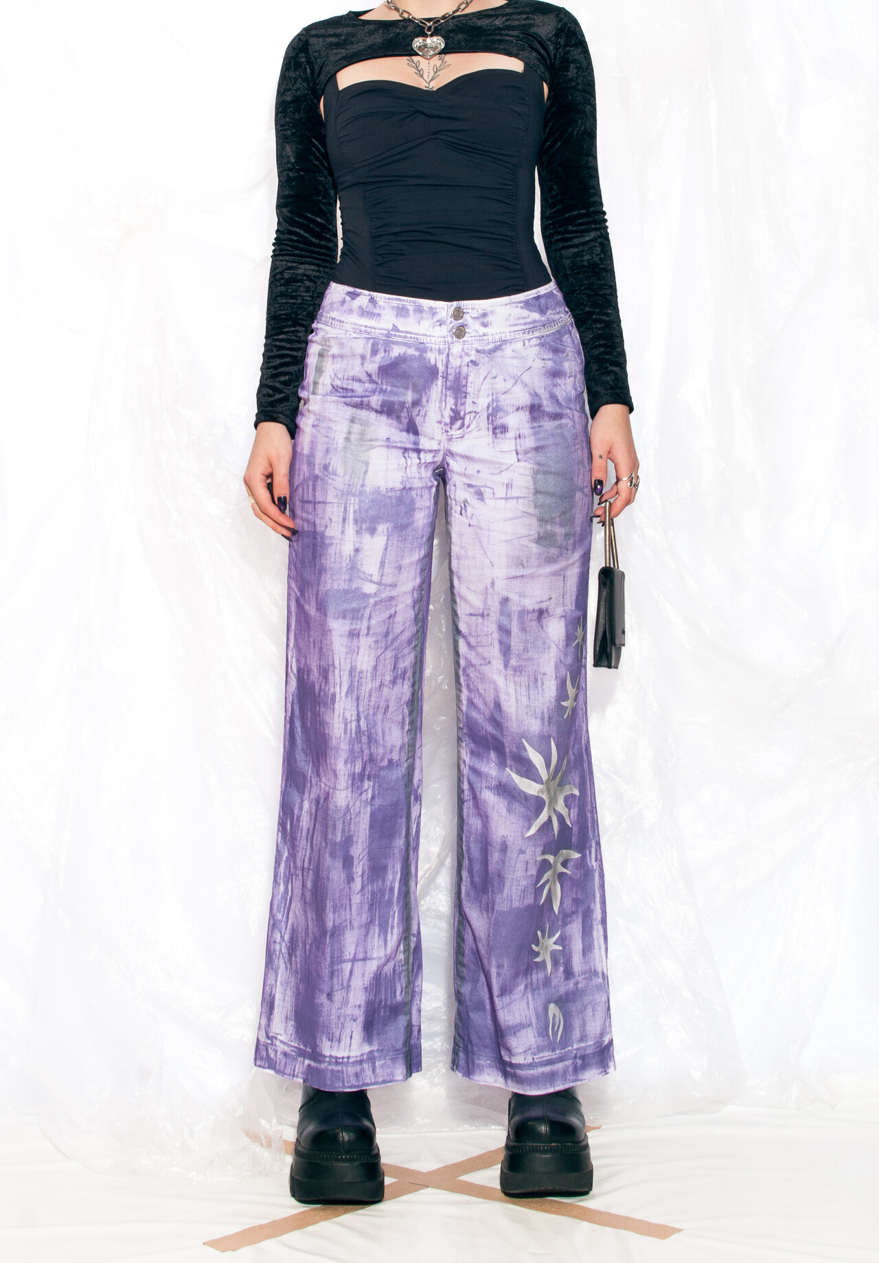 These hand-painted Y2K vintage trousers are more than just a fashion statement, they’re like a blast from the past you can wear. Slip on these funky flares and let your inner 90s kid shine through!