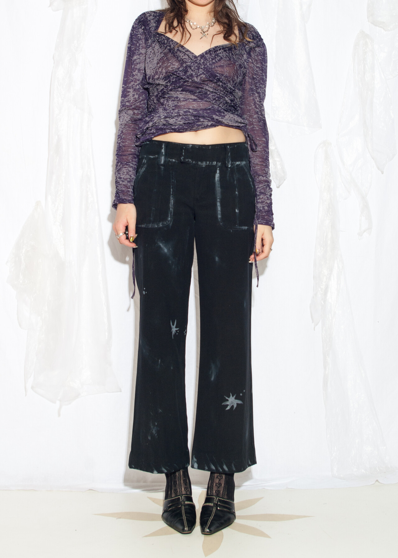 These Y2K vintage trousers with wide leg flares and hand-painted pizzazz are like discovering a time capsule of black magic from the era when low-rise was the ultimate power move.