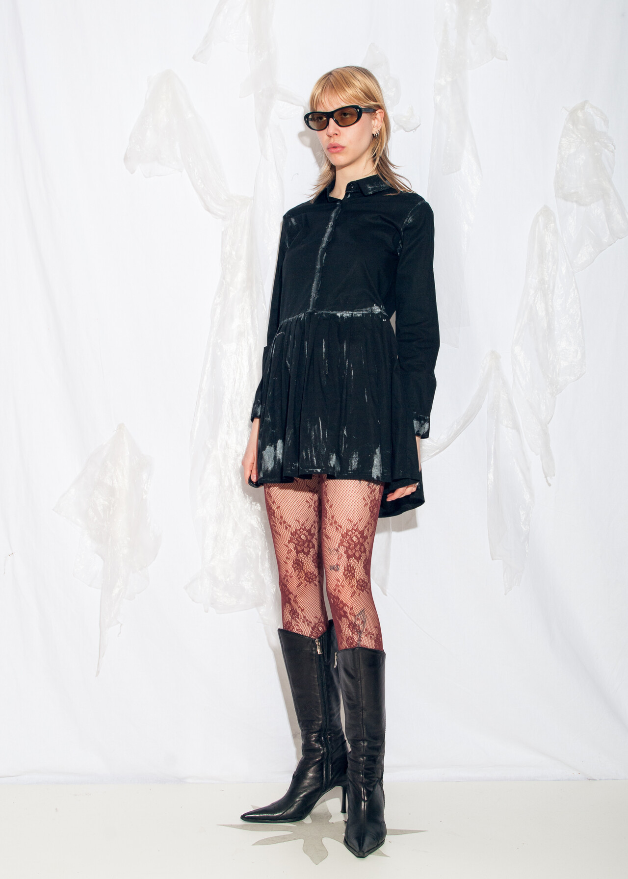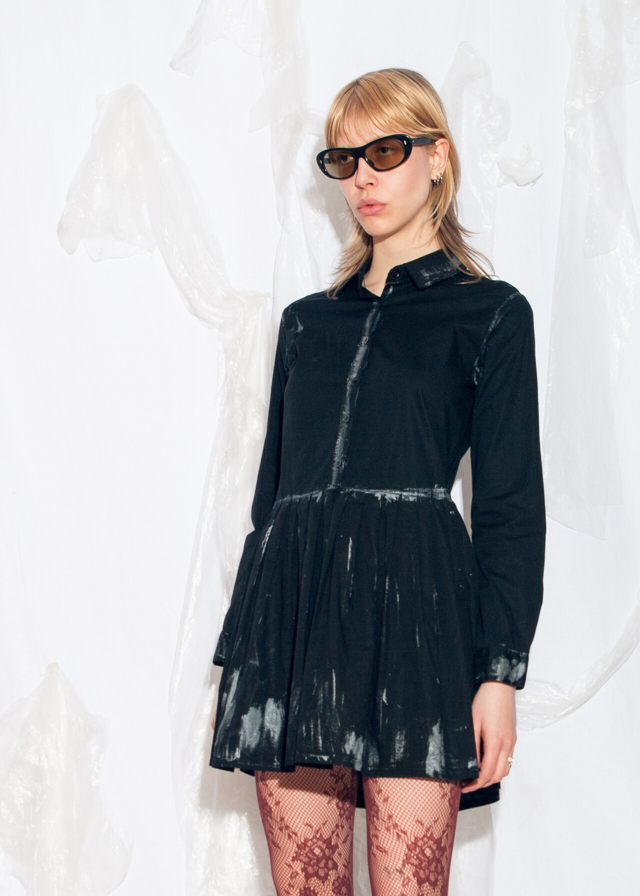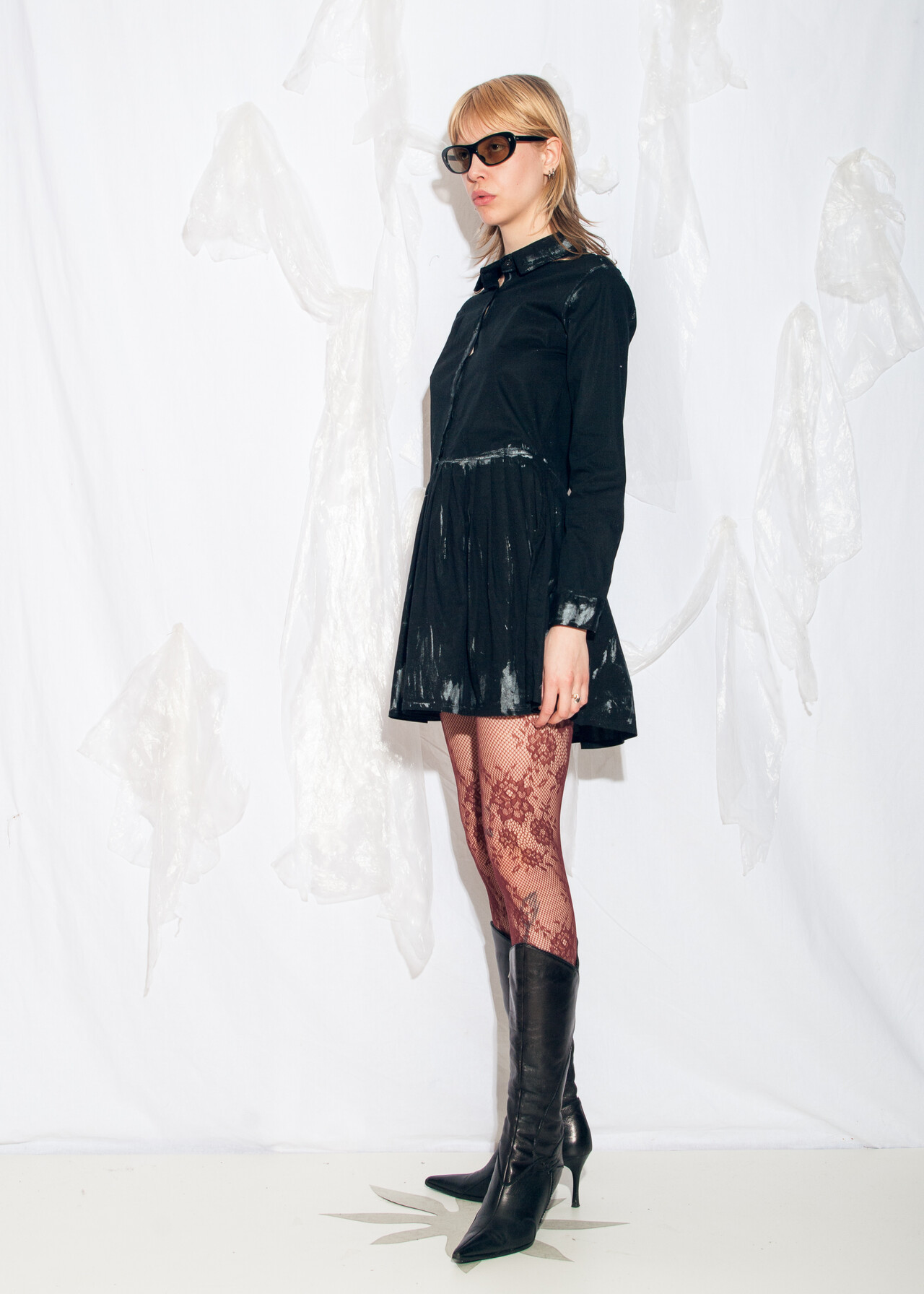 Tags: hand-painted, long sleeve dress, reworked, whimsical mini dress, whimsigoth, y2k shirt dress