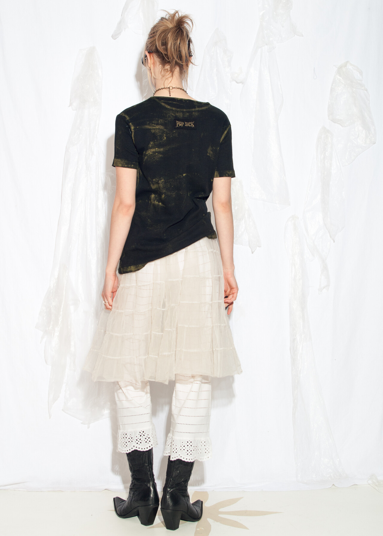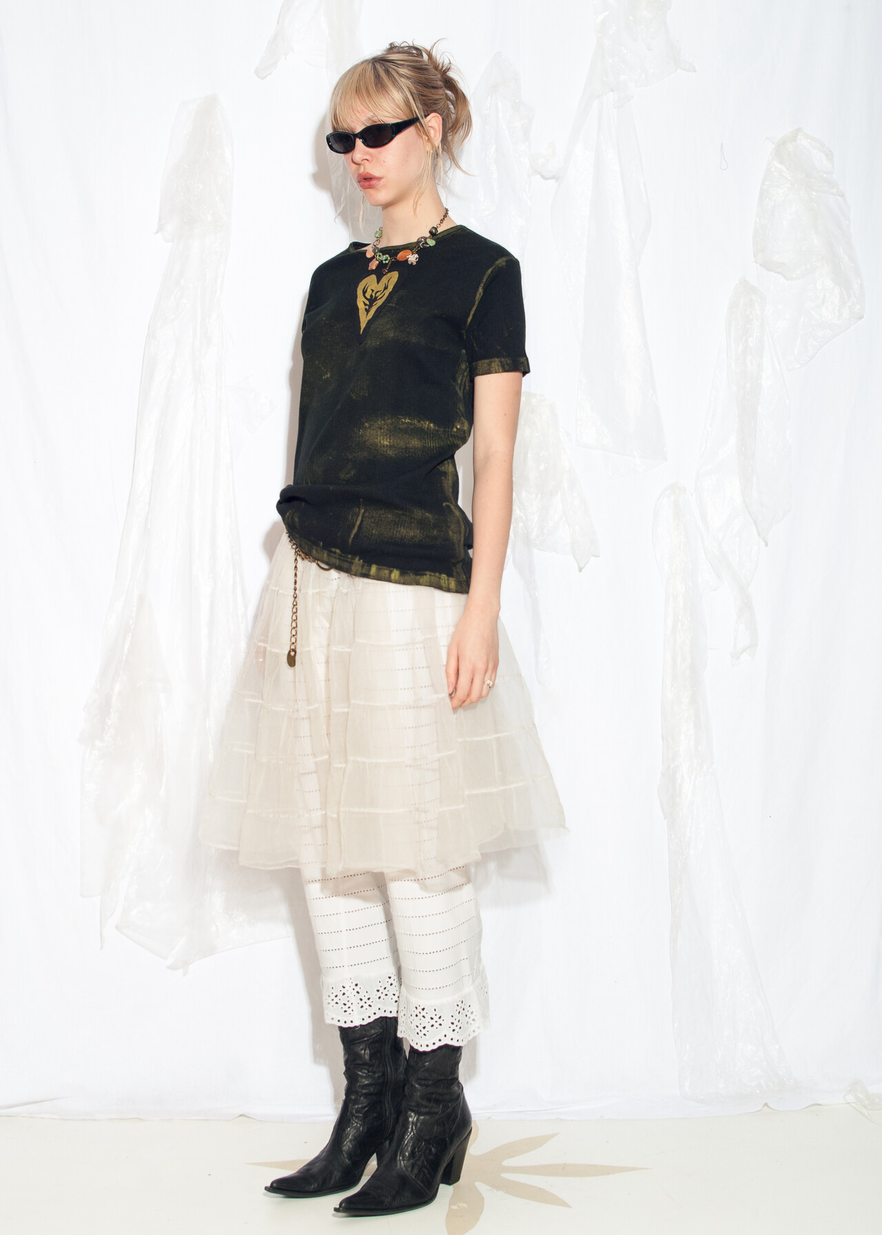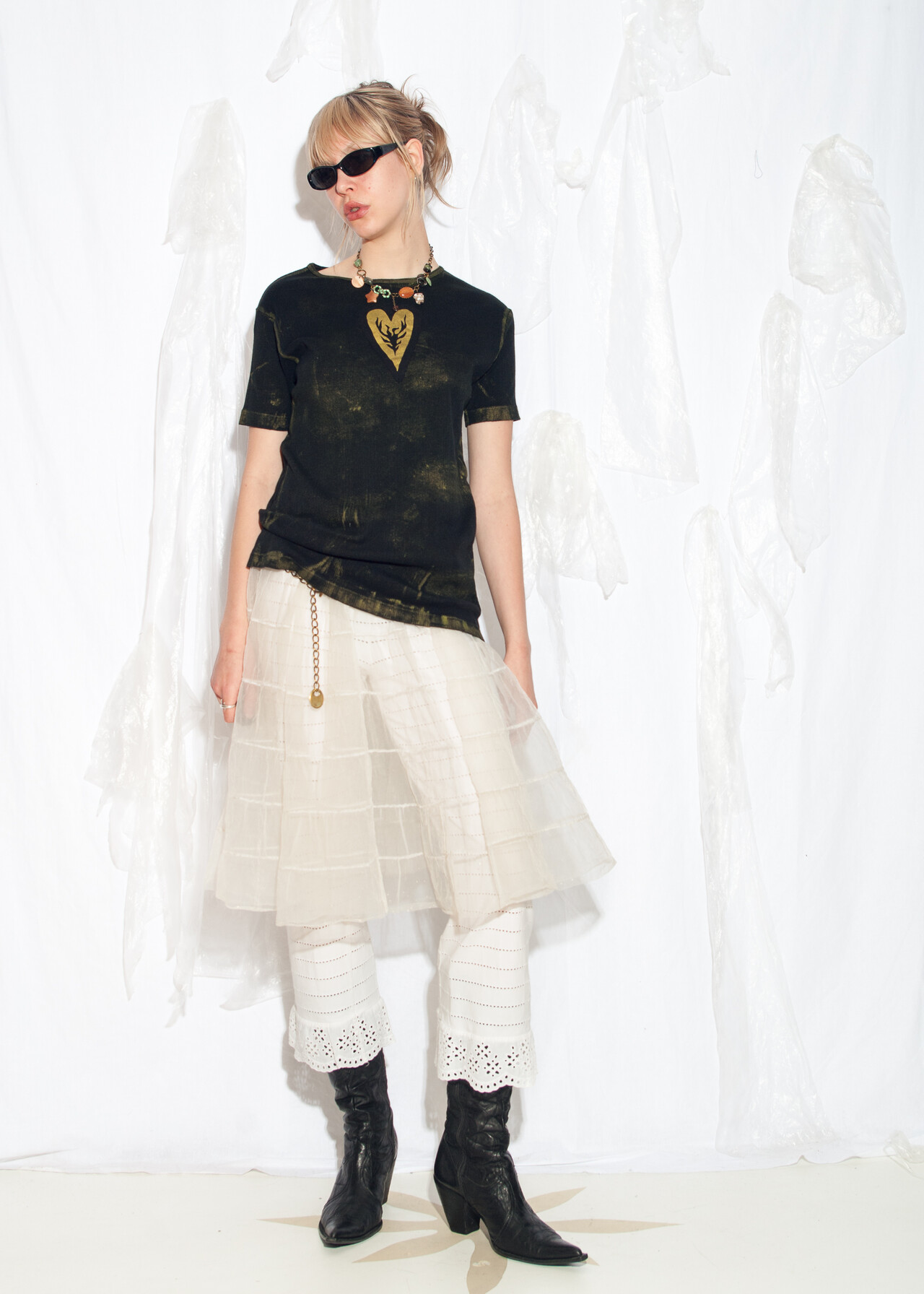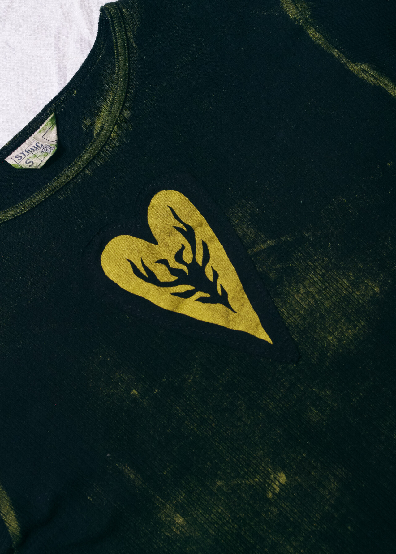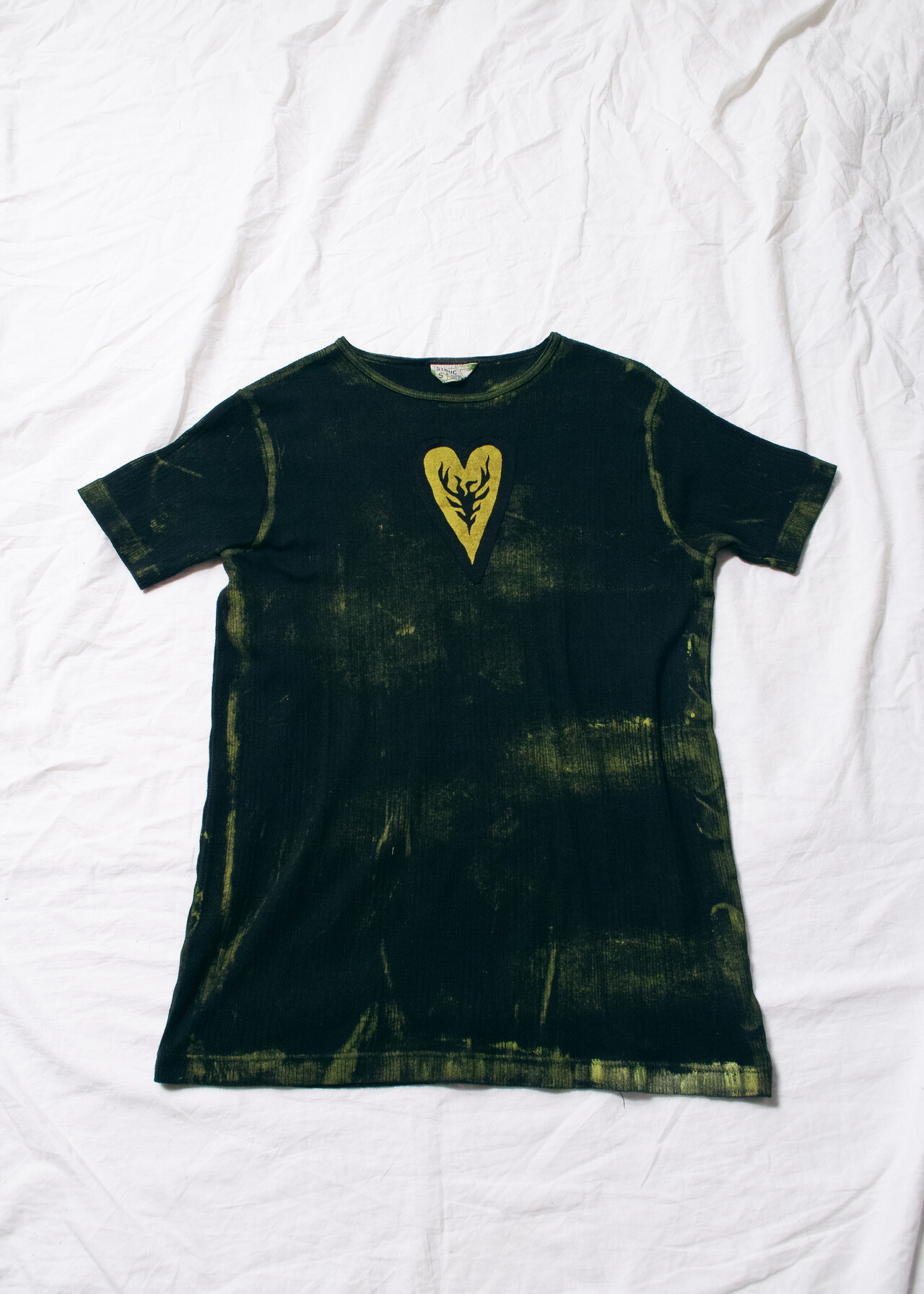 Tags: 2000s style clothing, grunge outfit, hand painted t-shirt, printed heart patch, reworked, ribbed cotton tee, upcycled top, whimsigoth, y2k vintage fashion
