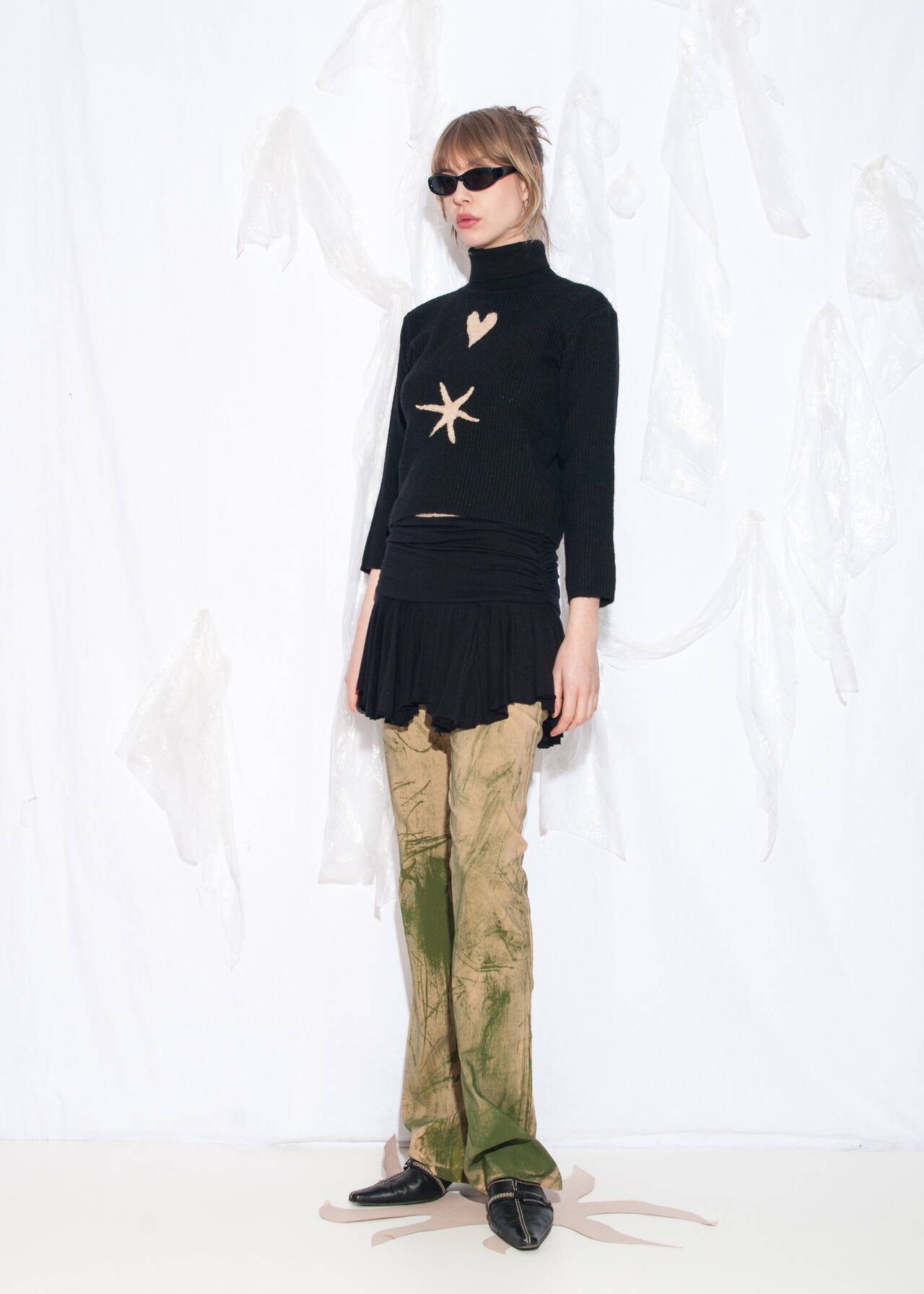 Tags: 2000s vintage style, reworked, star and heart wool patch, upcycled, whimsigoth, wool blend jumper