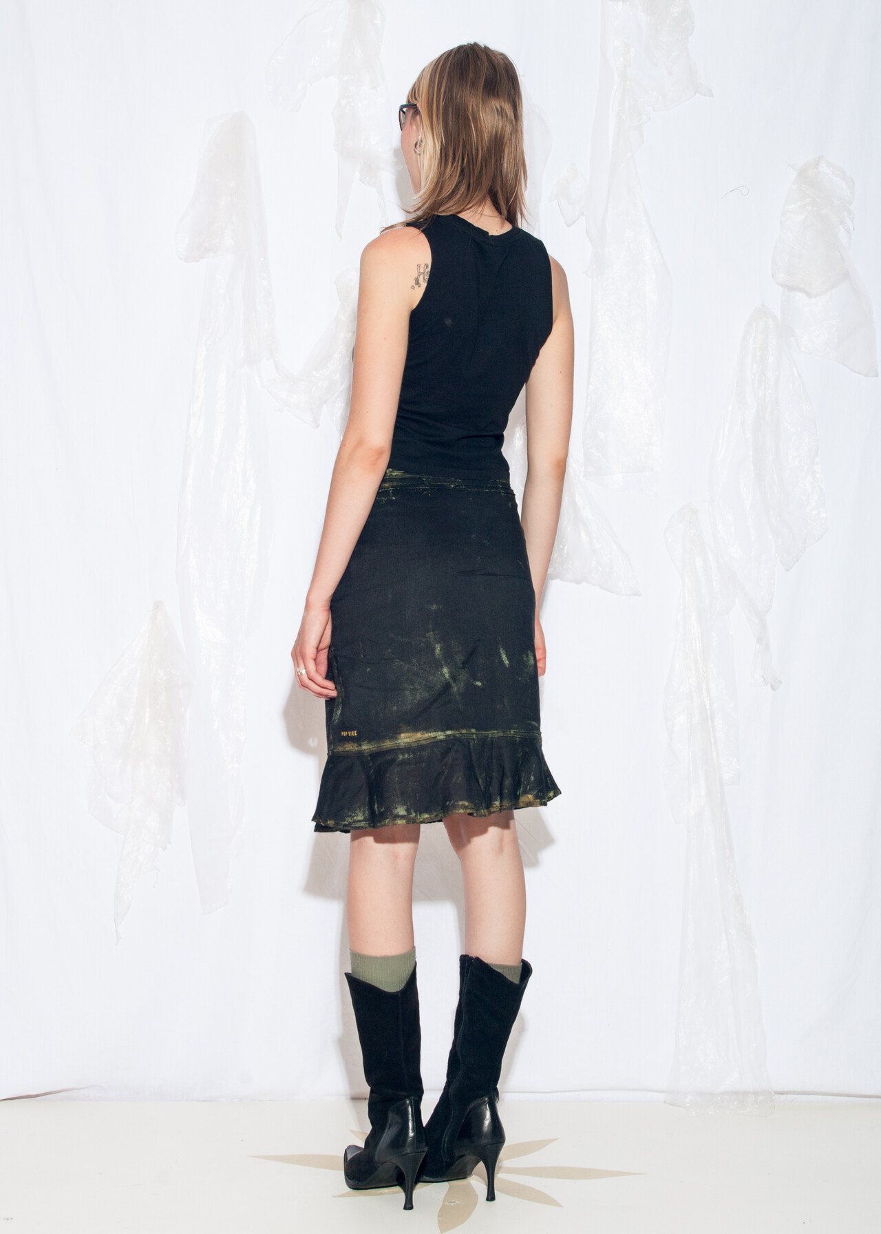 Reworked Vintage Y2K Linen Midi Skirt in Black Dirty Painted