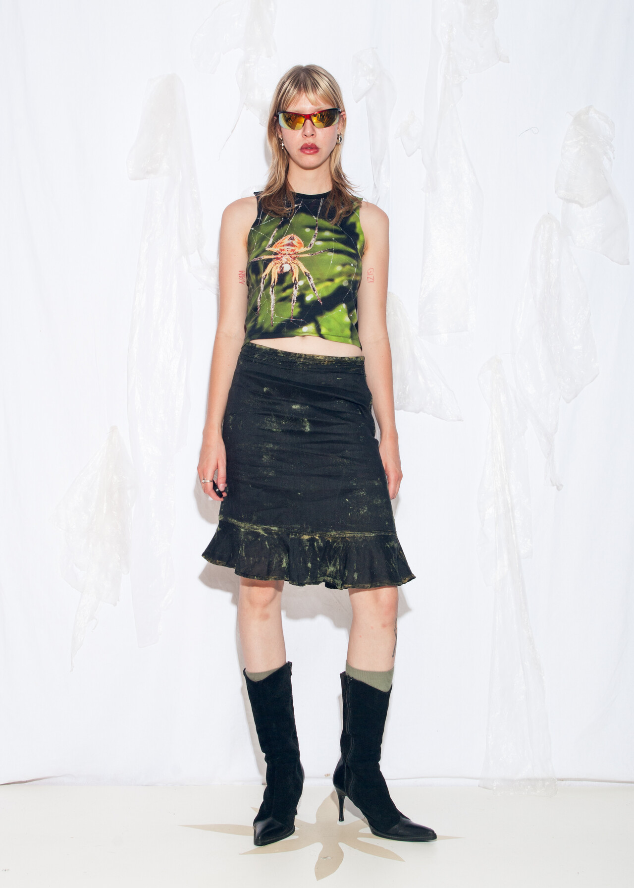 Vintage denim skirt 80s reworked cropped grunge skirt