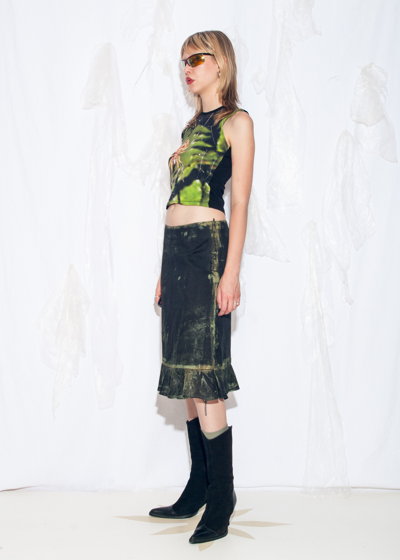 Be the first to review “Reworked Vintage Y2K Linen Midi Skirt in Green Painted” Cancel reply