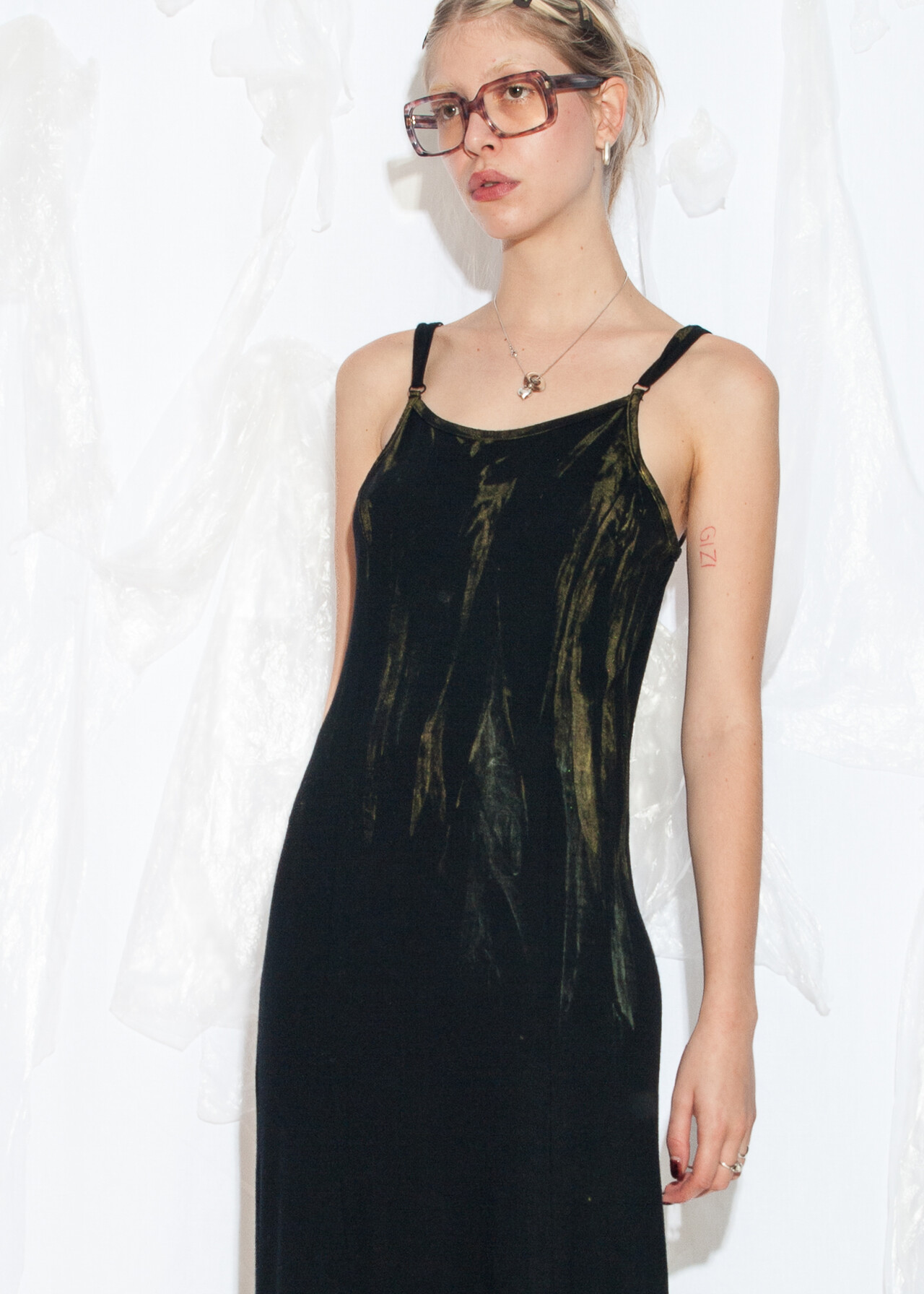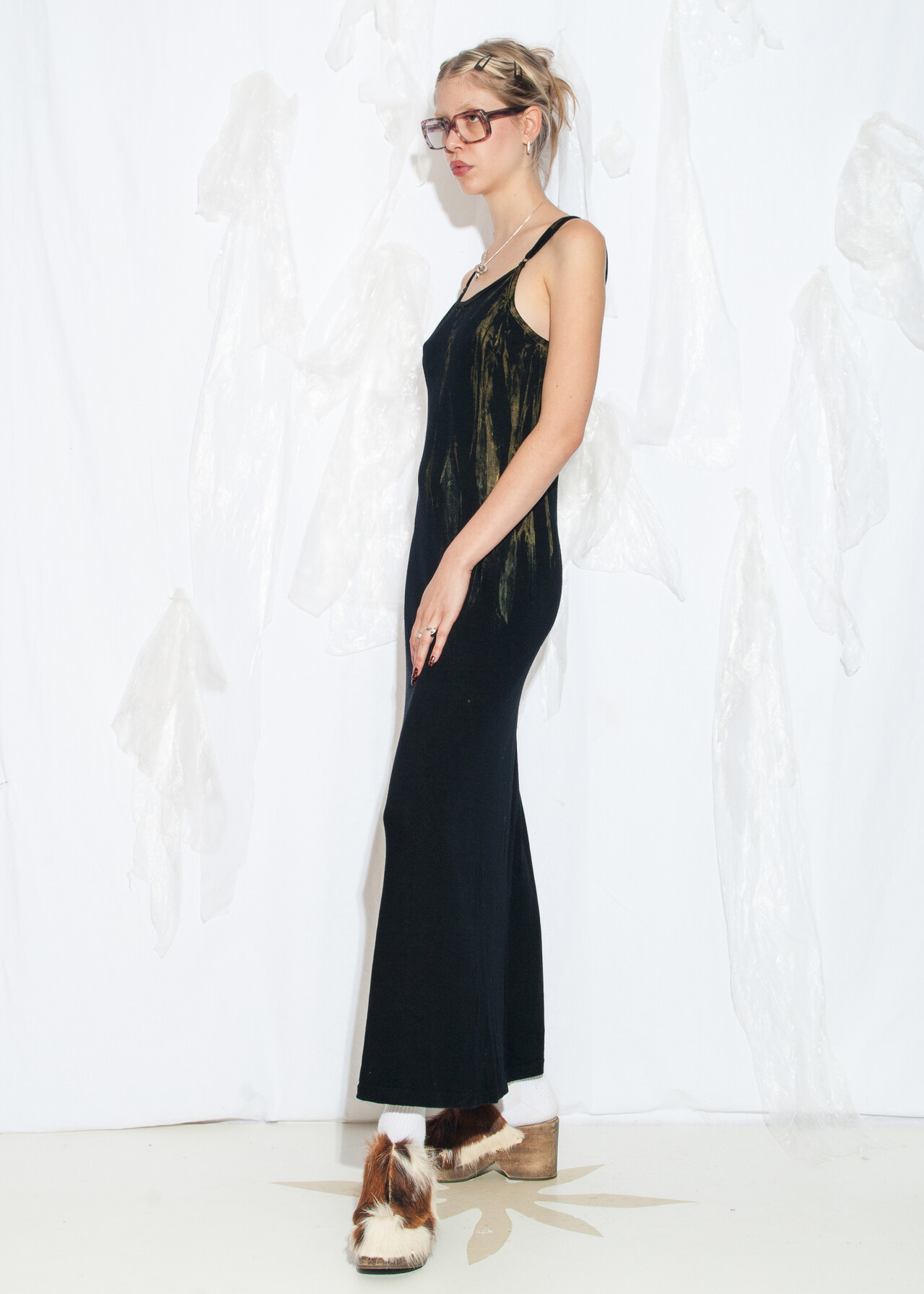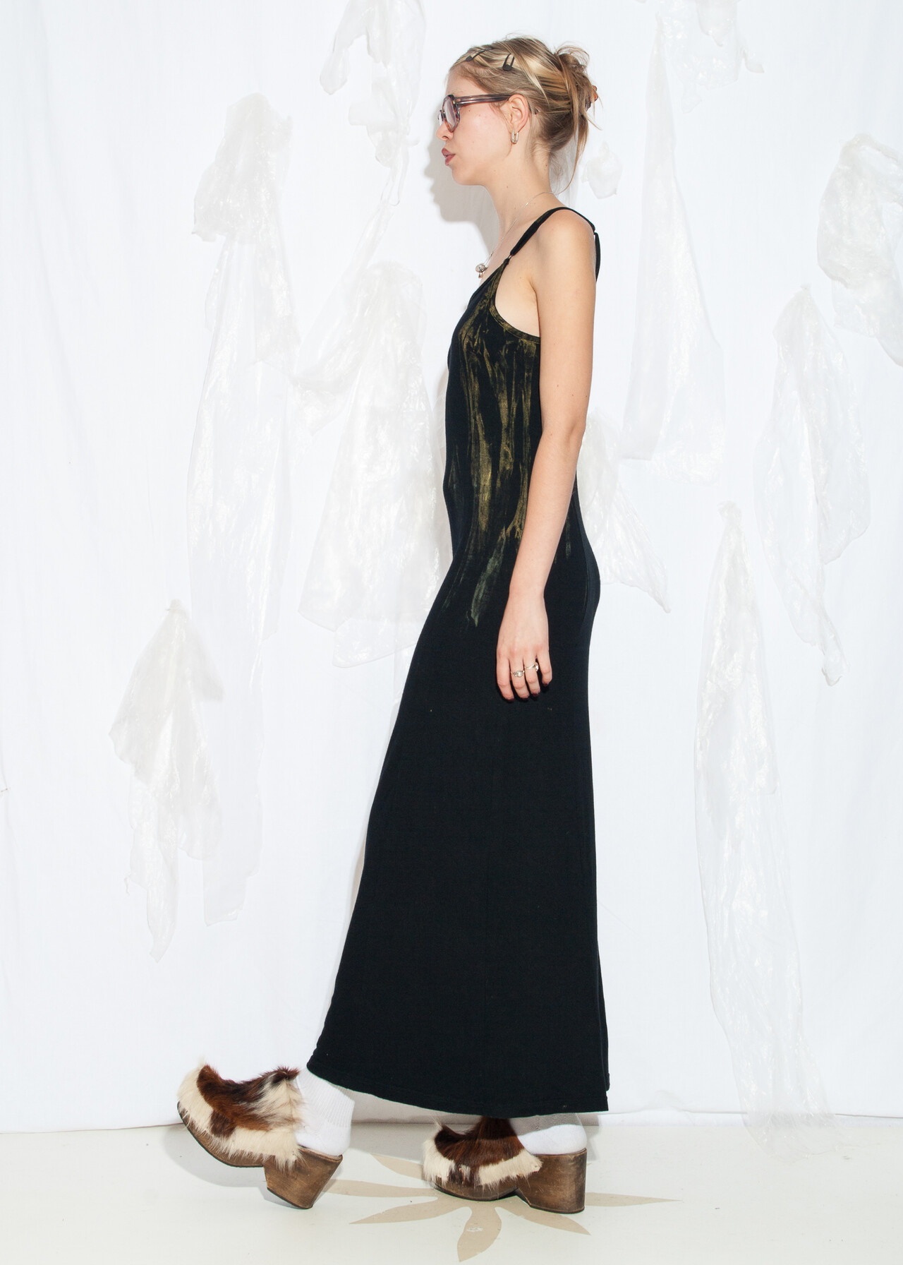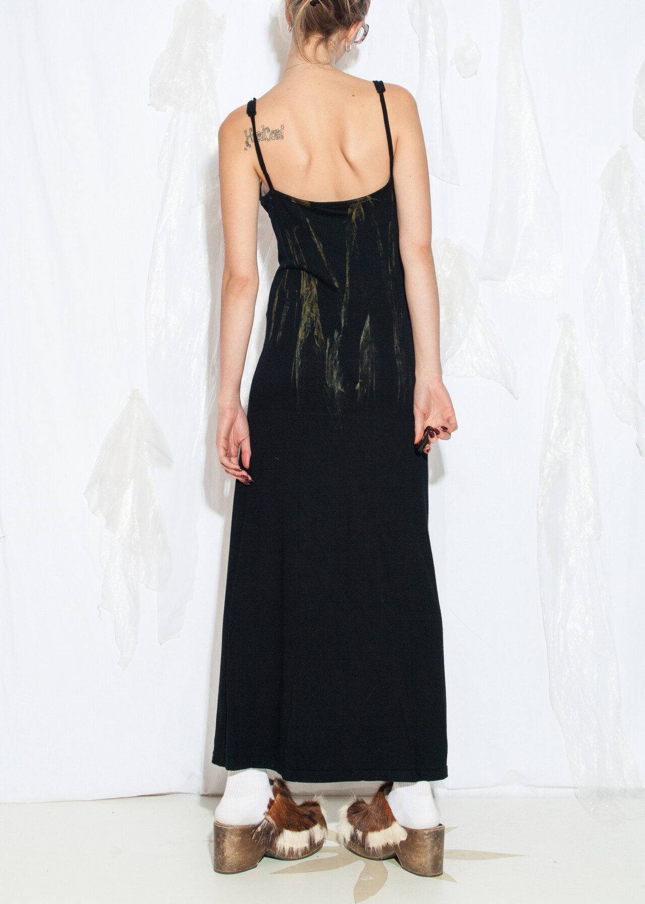 Tags: 2000s style clothing, black maxi dress, dirty look, long viscose dress, reworked, whimsigoth, y2k grunge outfit, y2k vintage fashion