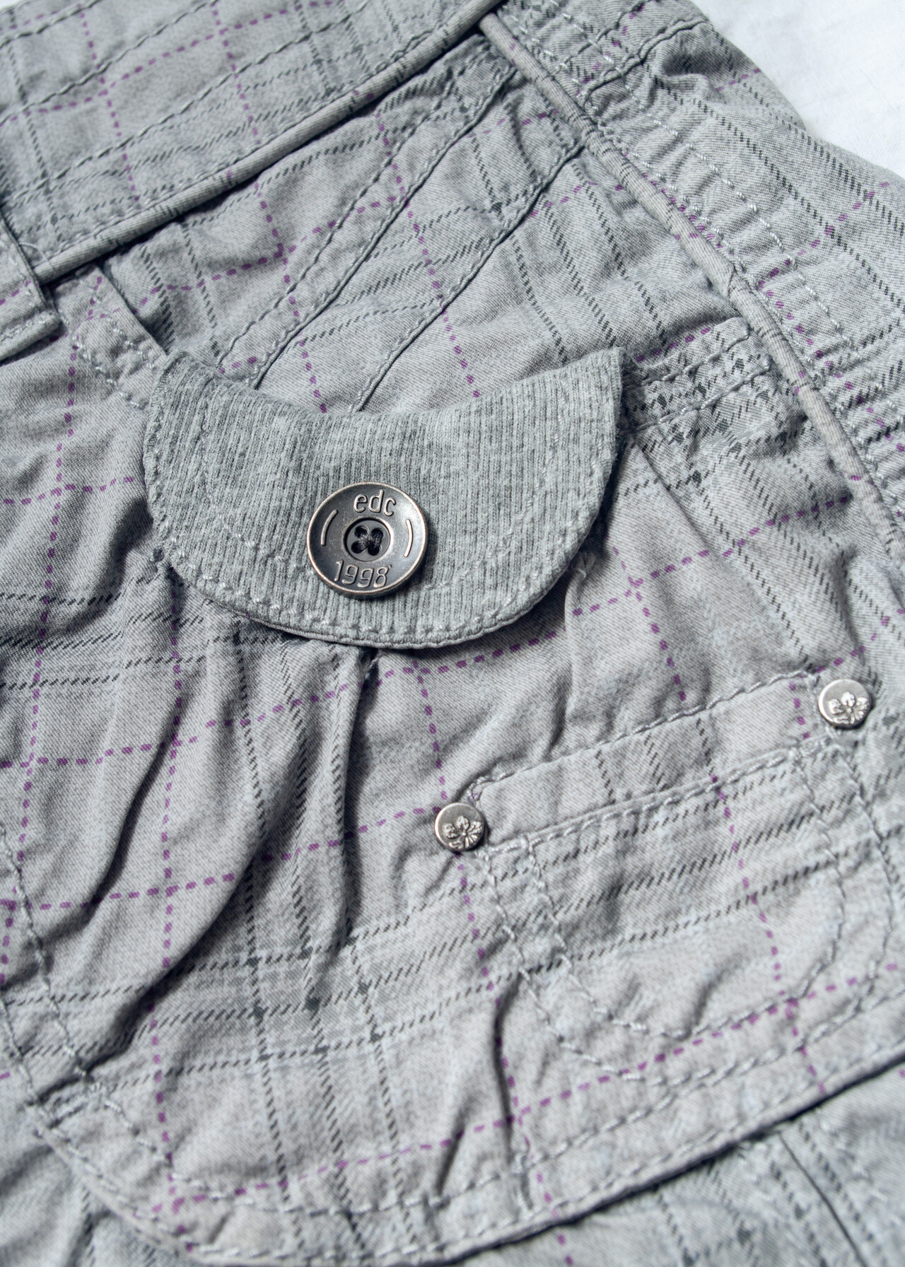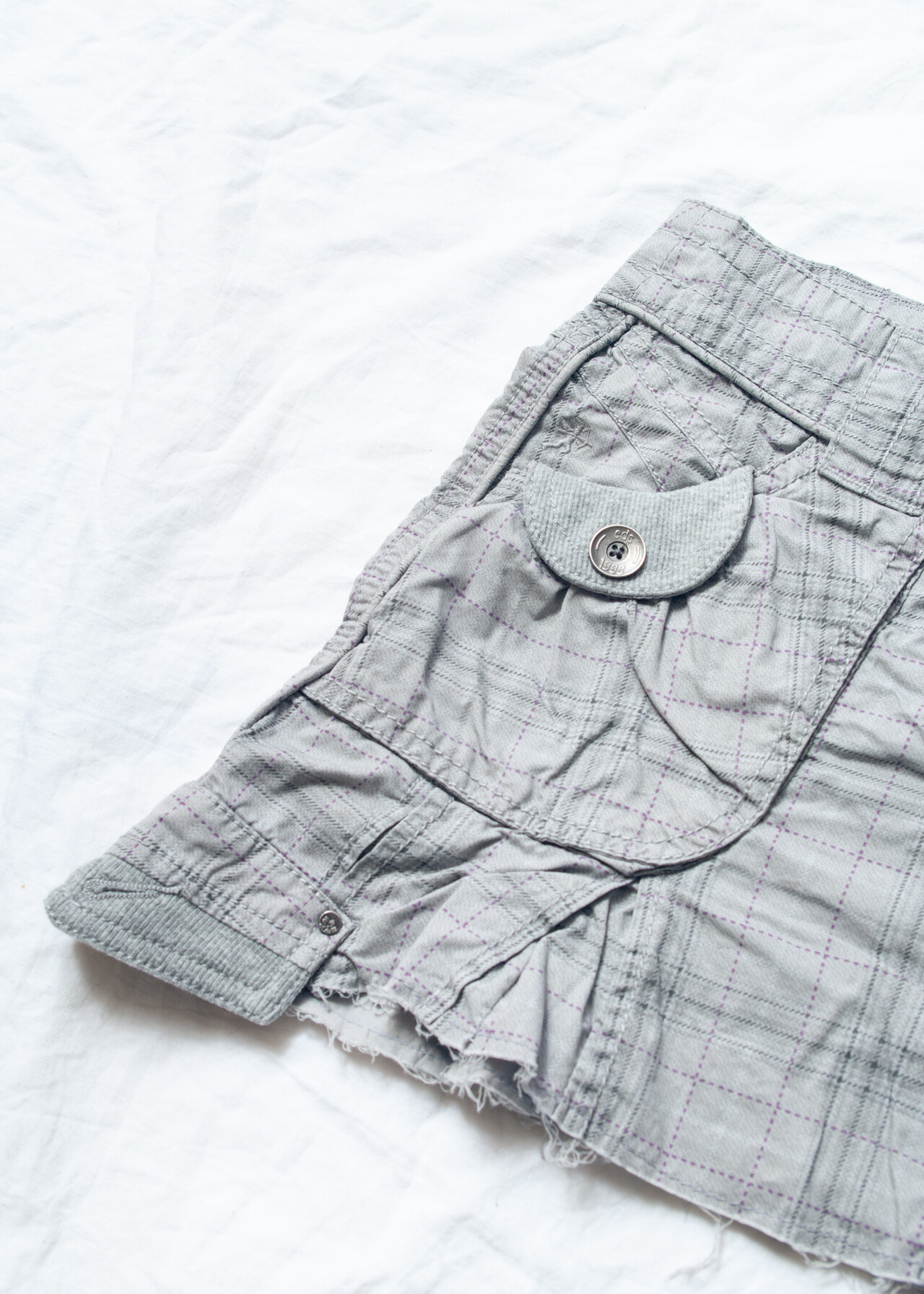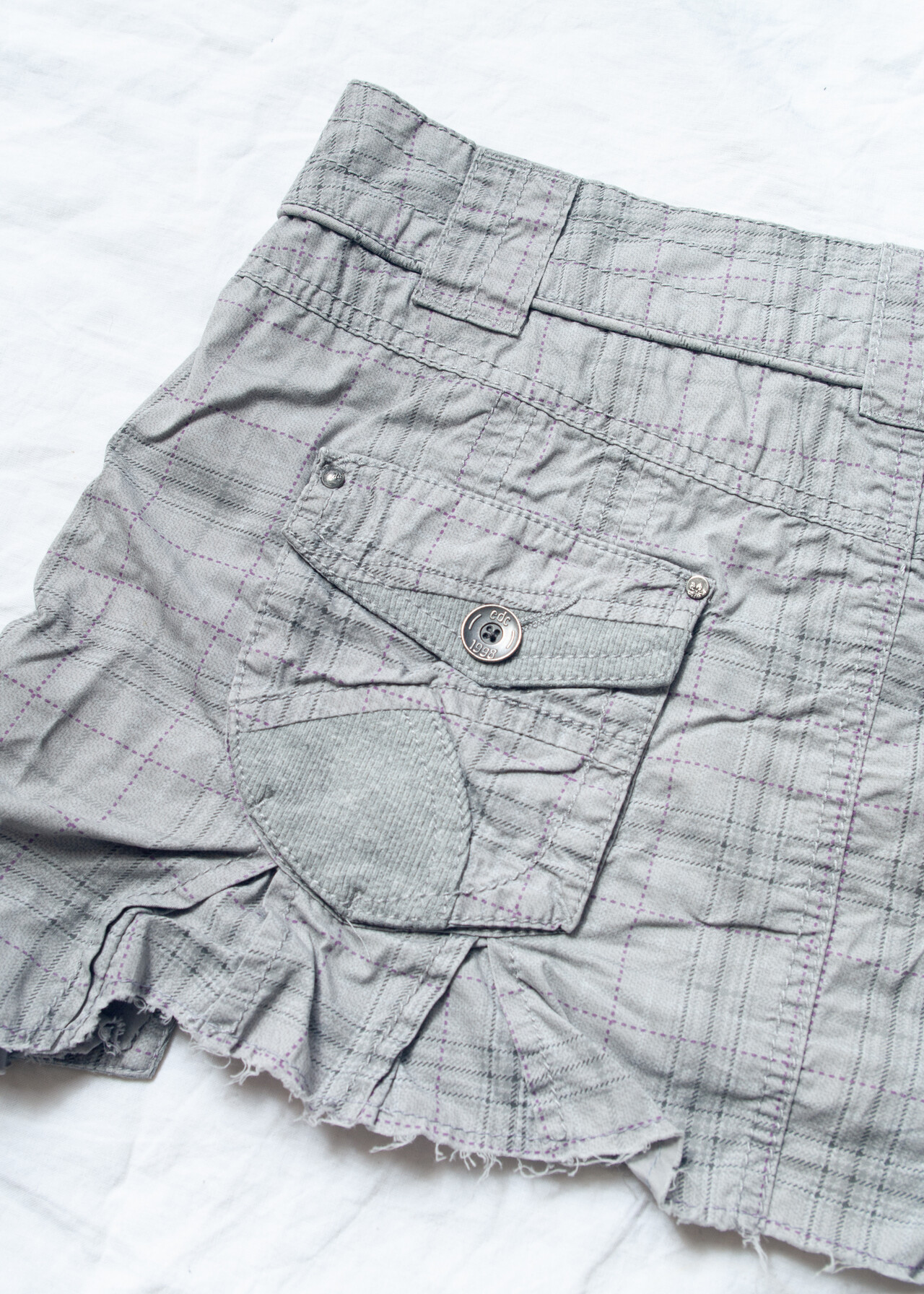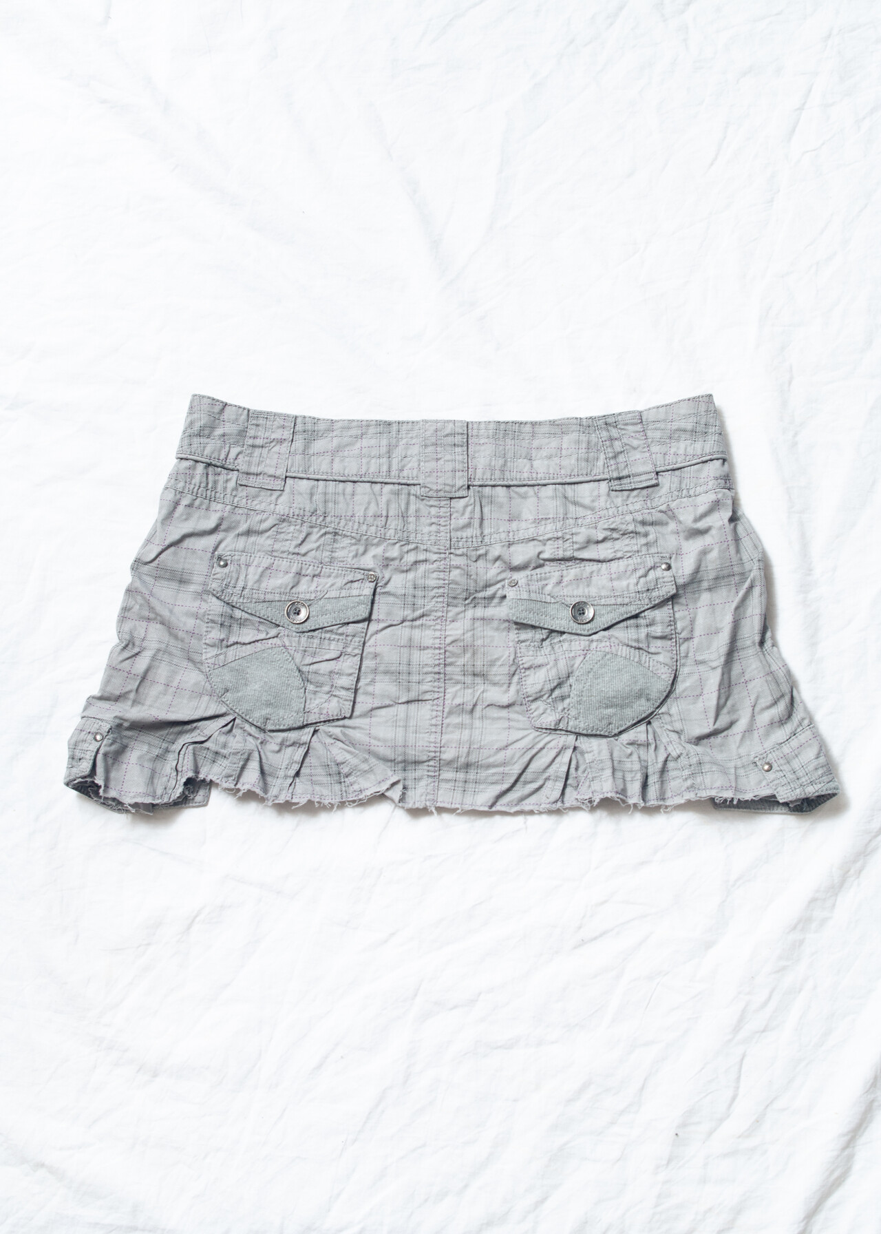 Tags: 2000s style clothing, cotton micro skirt, cut off plaid skrit, edgy cyber punk, grey checked, low rise bottoms, low waisted skirt, pocketed cargo mini, reworked, y2k grunge outfit, y2k vintage fashion