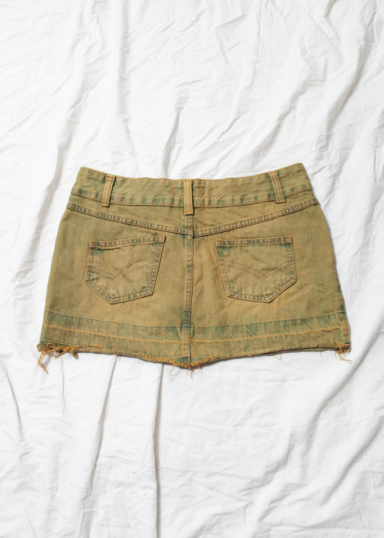 Tags: 2000s style clothing, denim micro skirt, low rise waist, mud wash green, reworked, upcycled jeans, y2k grunge outfit, y2k vintage fashion