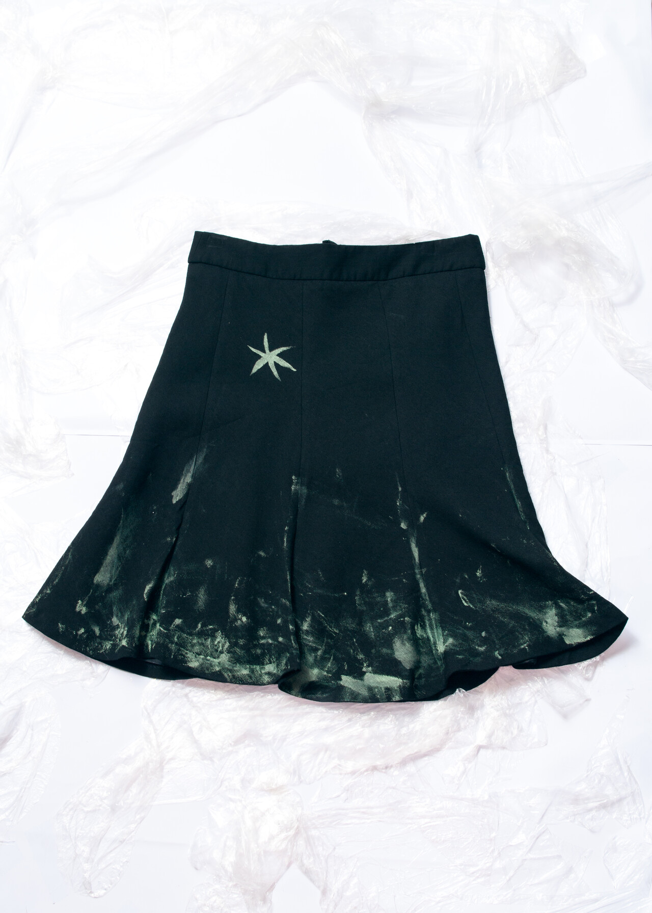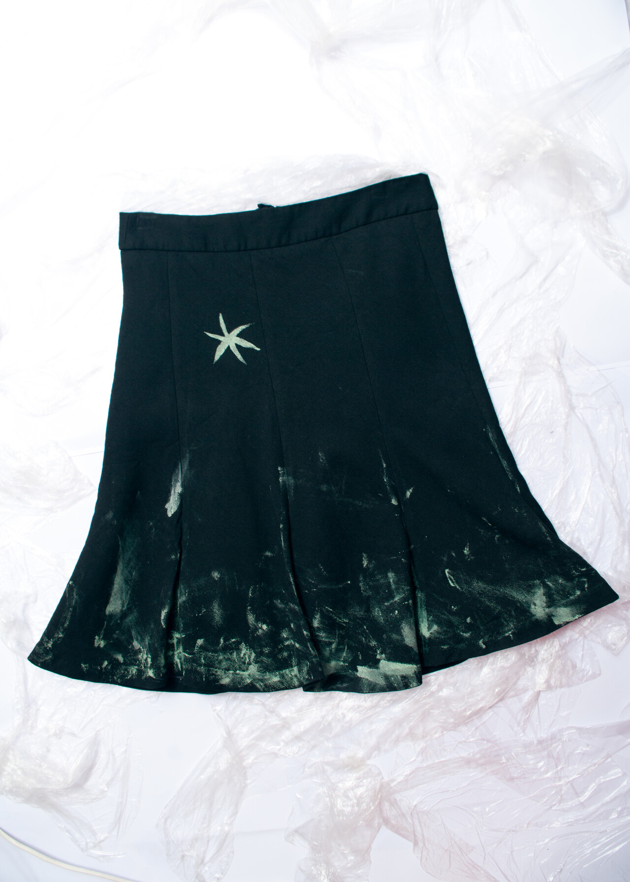 This Y2K vintage skirt is a whimsigoth masterpiece that takes you back to the days of low-rise glory and hand-painted flair.