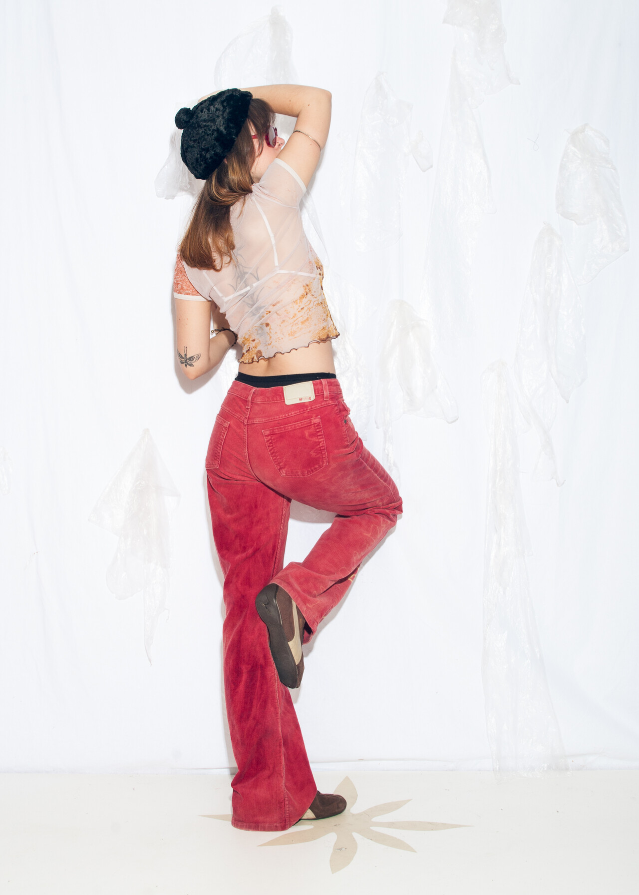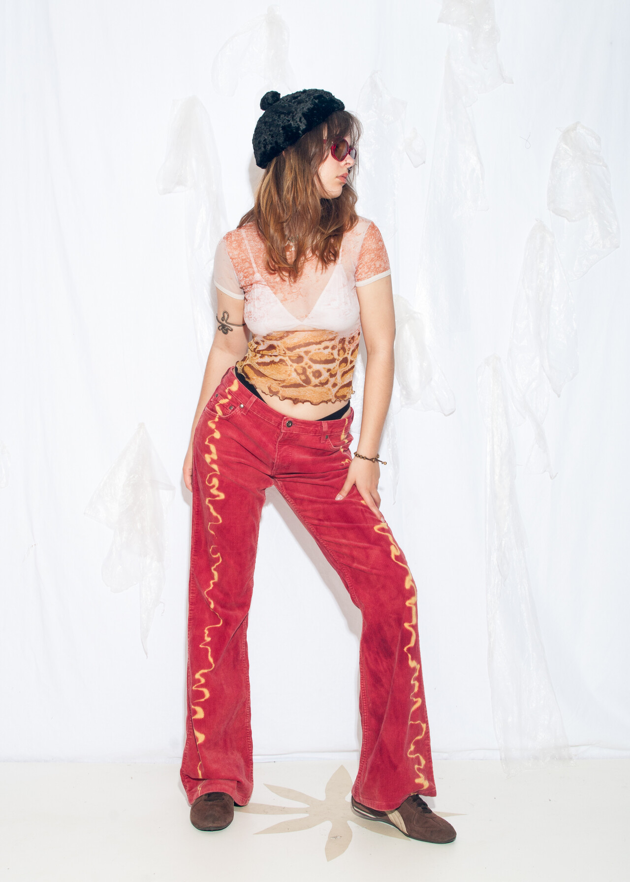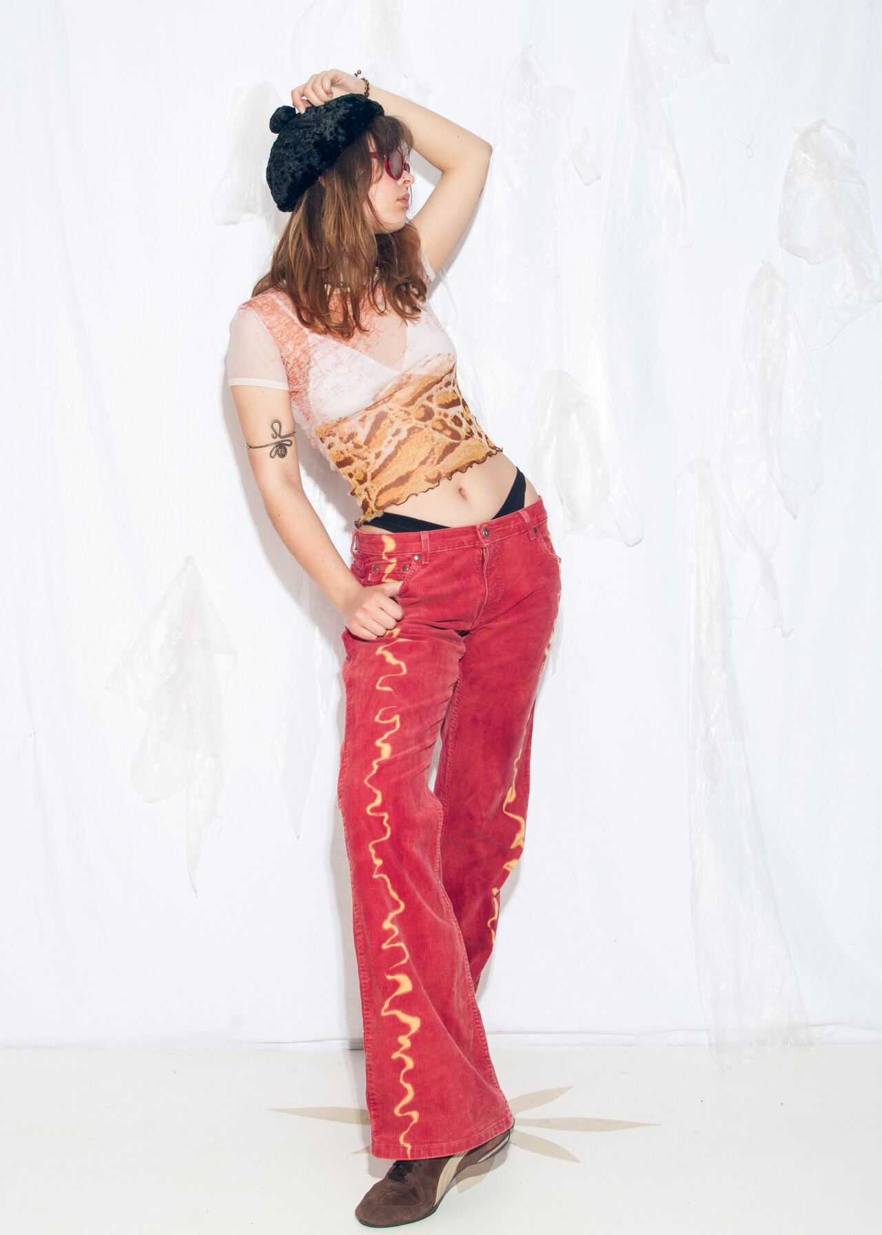 Tags: 2000s style clothing, corduroy pants, flare trousers, hand-painted, low rise waist, reworked, y2k vintage fashion