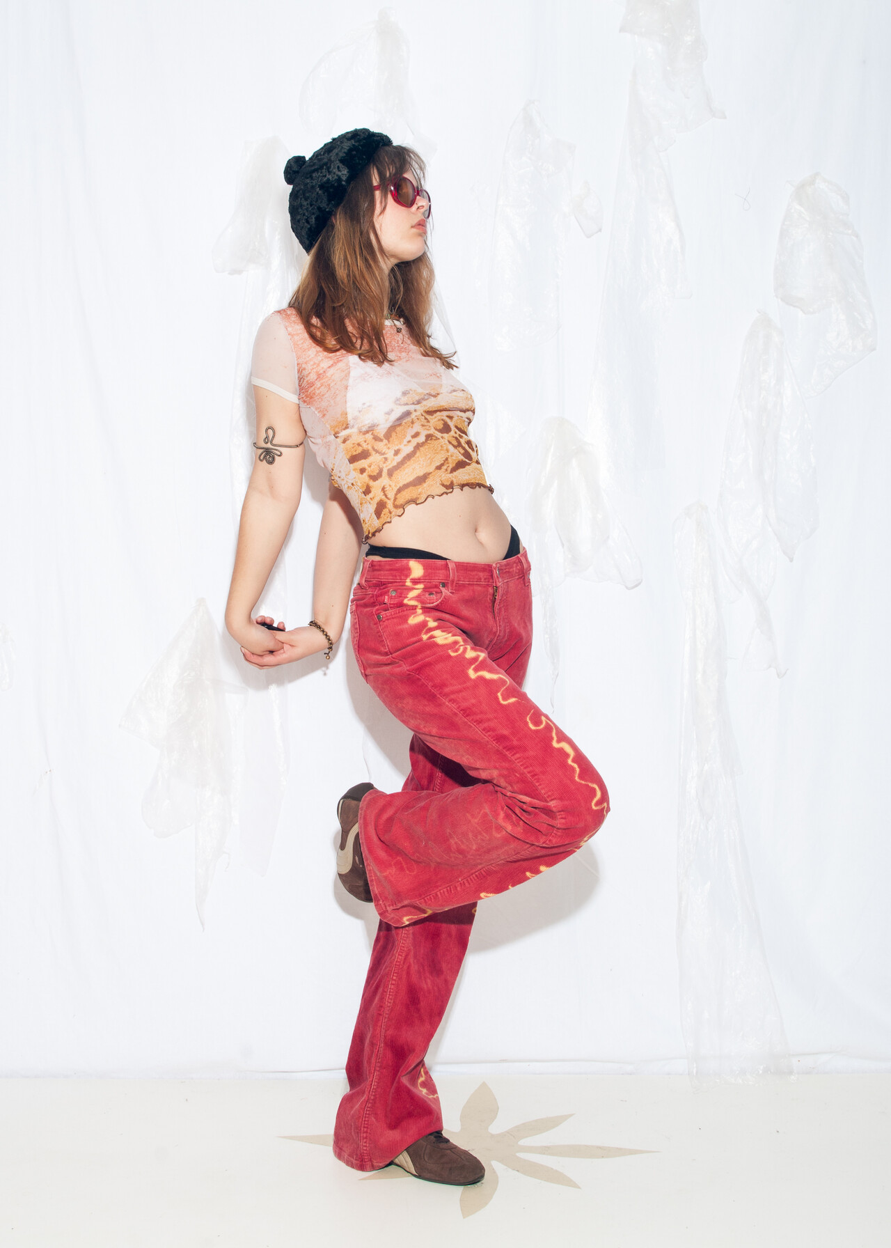 These Y2K vintage mustang trousers are the hand-painted red flares you didn’t know your closet was desperately missing, like a low-rise love letter from the early 2000s.