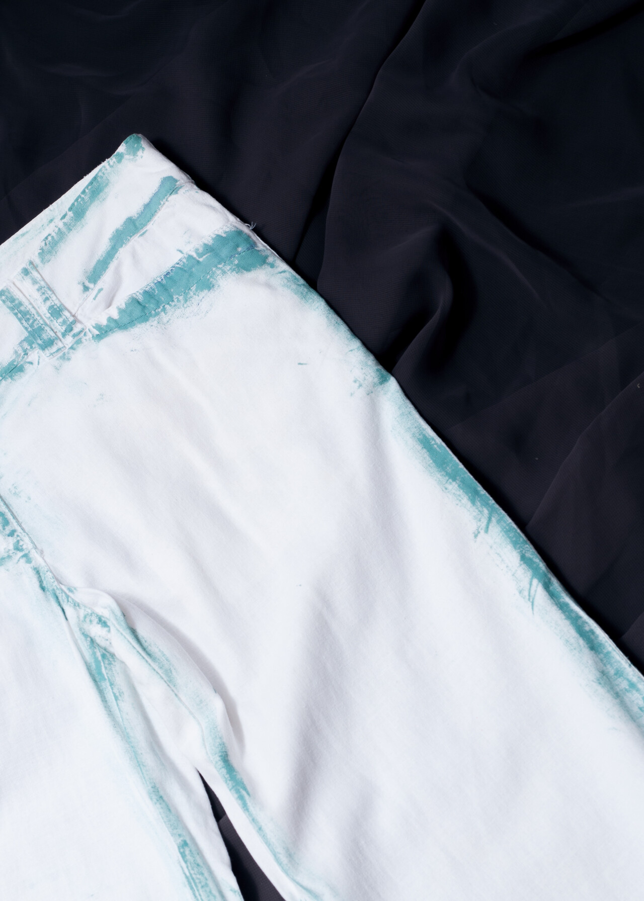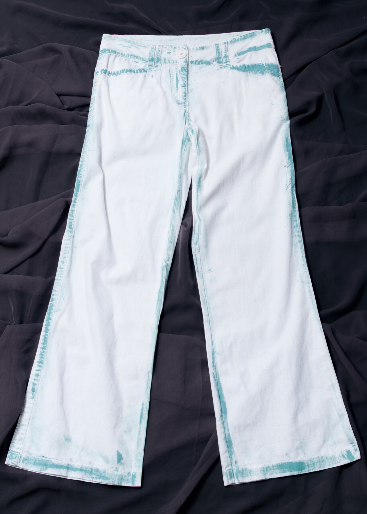 Reworked Cow Jeans 90s High Rise Painted Trousers in Blue