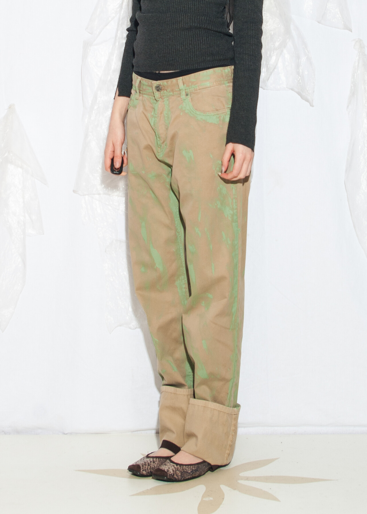 Reworked Vintage Y2K Slouchy Jeans in Beige and Green