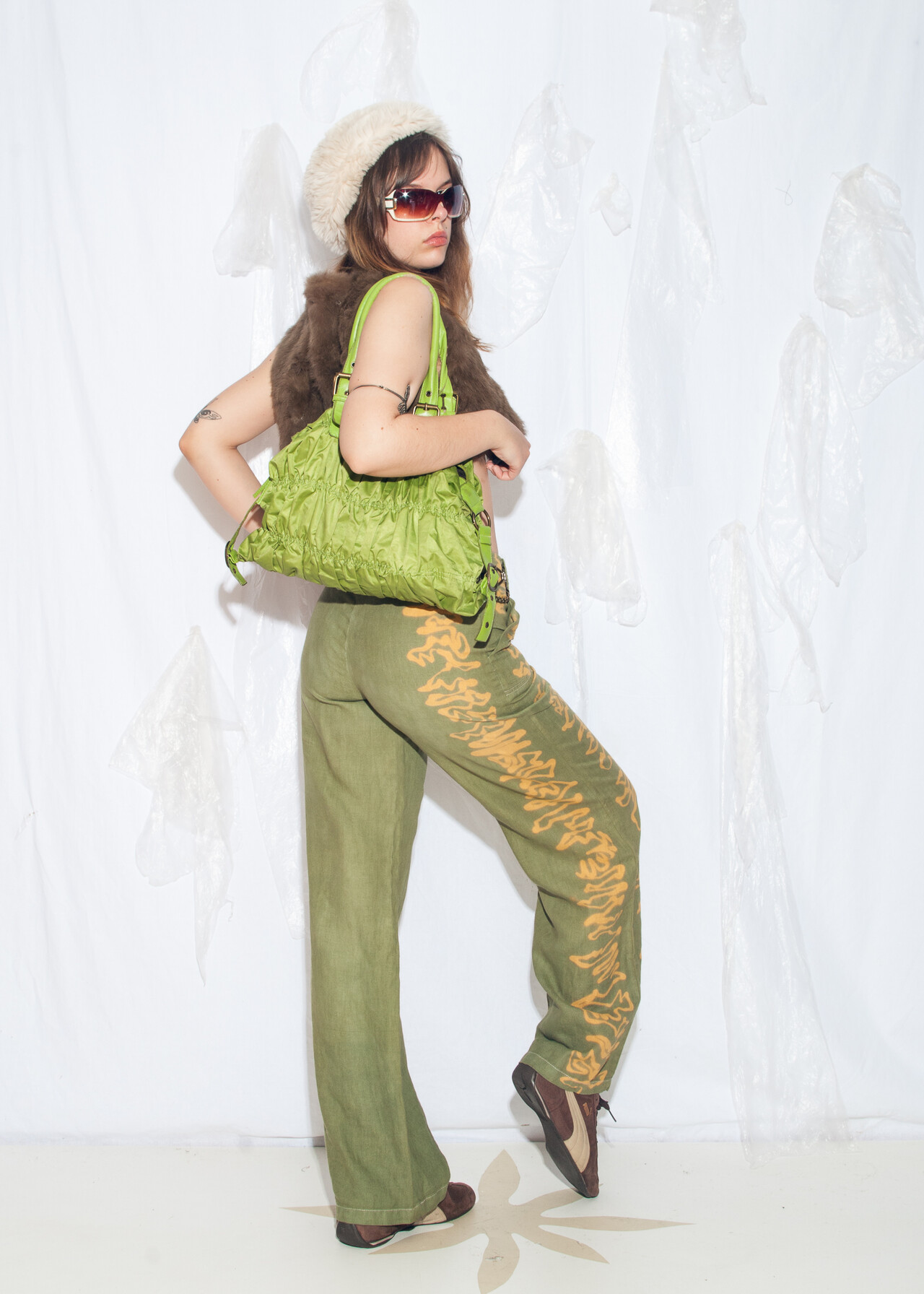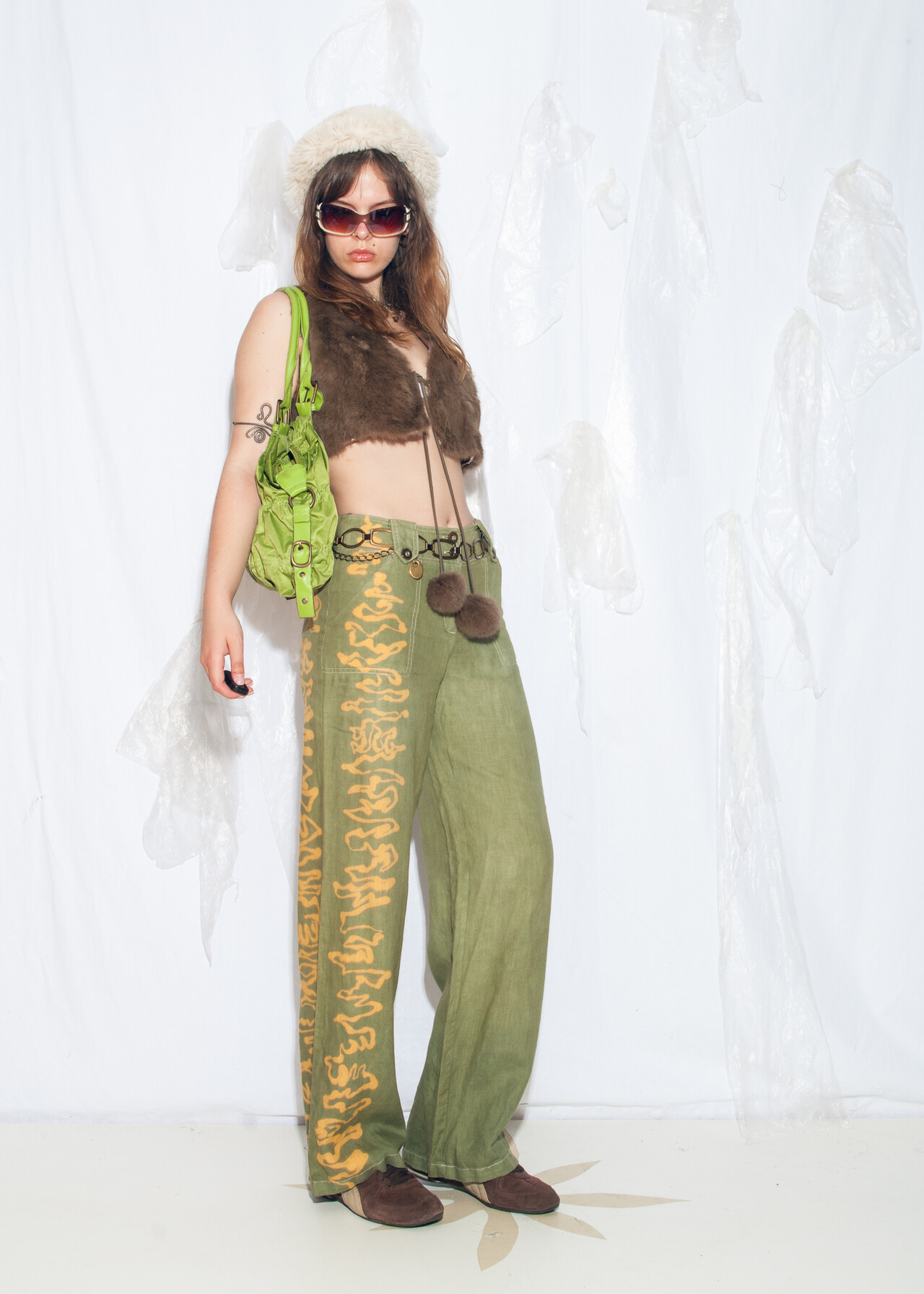 These Y2K vintage linen trousers are like stepping into a time capsule of wide-leg wonders and hand-painted flair, ready to transport you back to the era of flip phones and frosted tips.