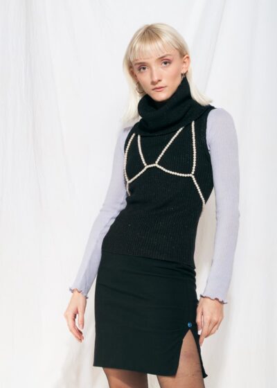 Vintage top Y2K glitter black turtleneck knit vest