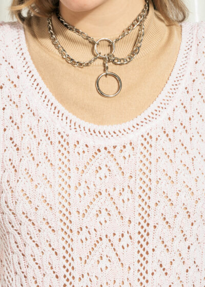 Vintage Lace Top 90s Crochet Tee in Pastel Pink
