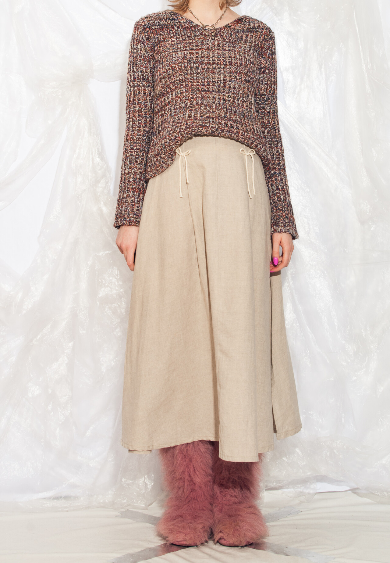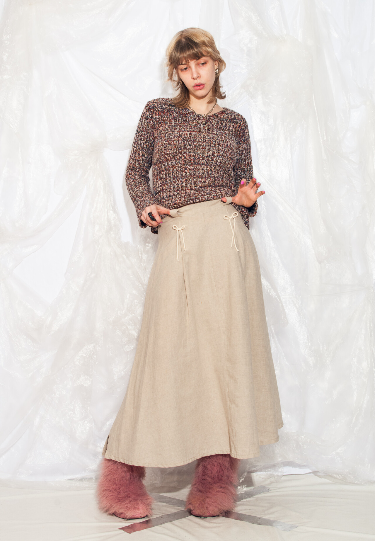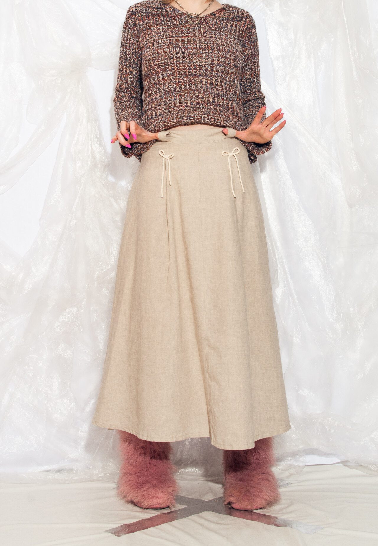 Vintage 90s Maxi Skirt in Beige Linen Reworked with Bows