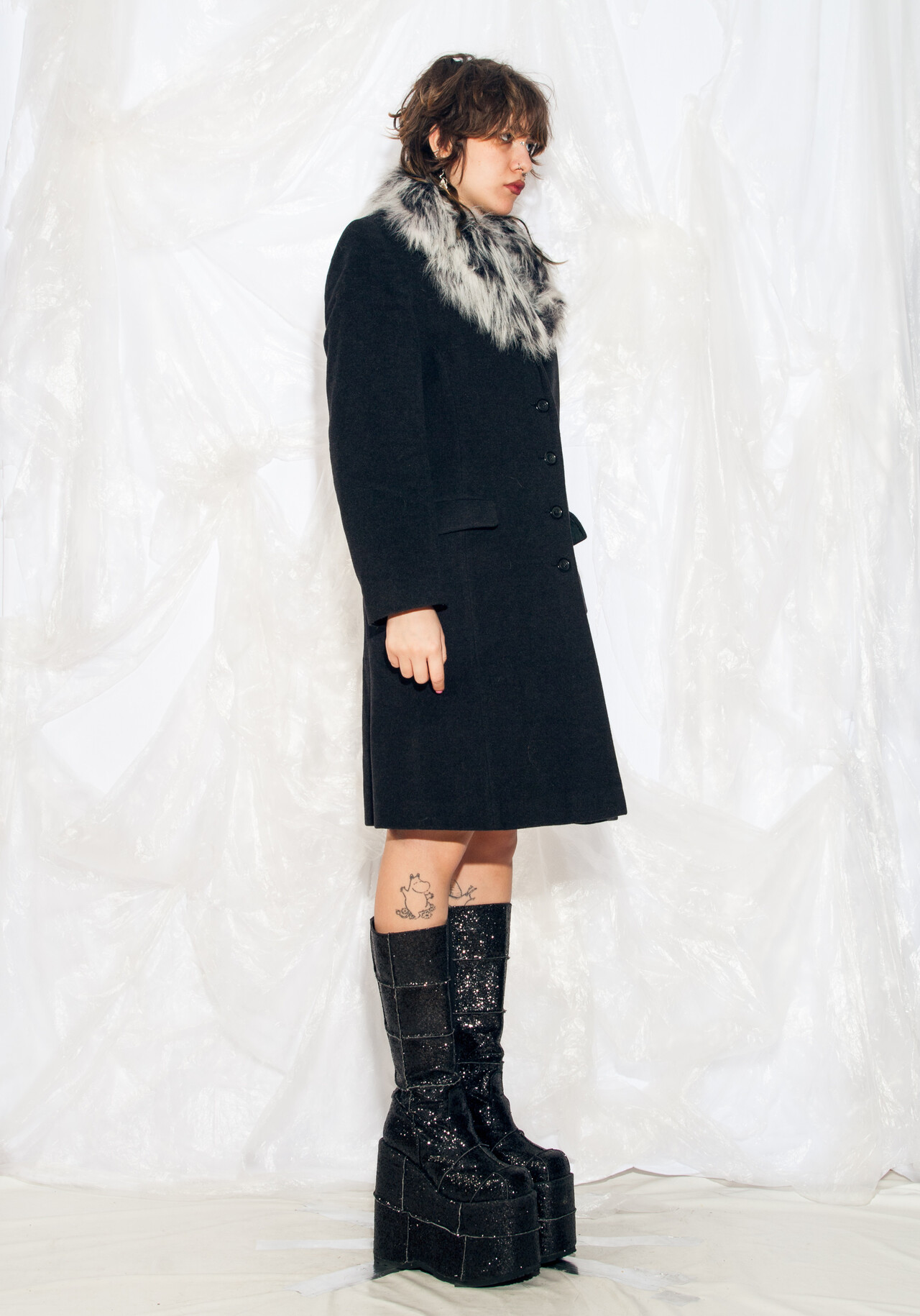 Be the first to review “Vintage 90s Reworked Coat with Faux Fur Collar in Black Wool” Cancel reply
