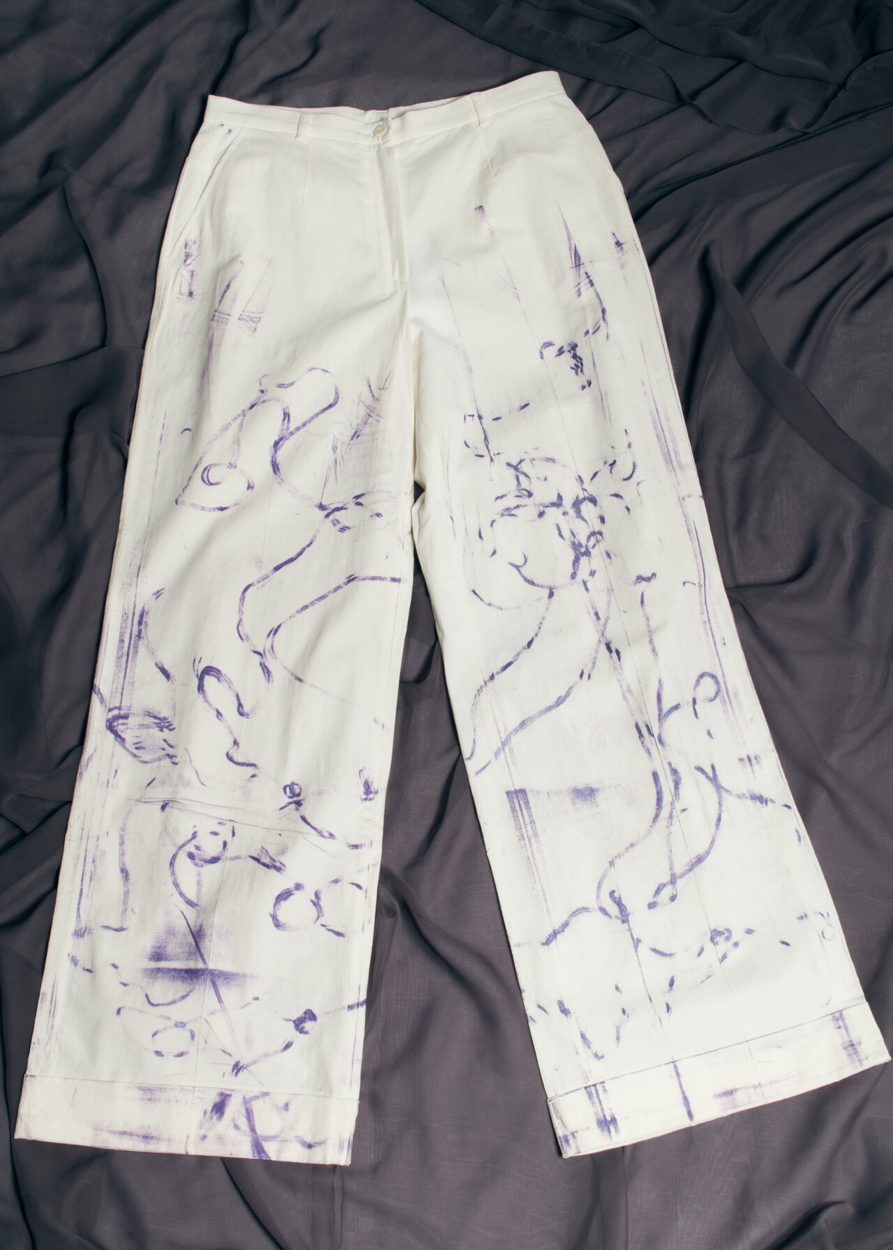 These reworked 90s vintage trousers will make you feel like a cool artist from a past era. Hand-painted in our small home studio.
