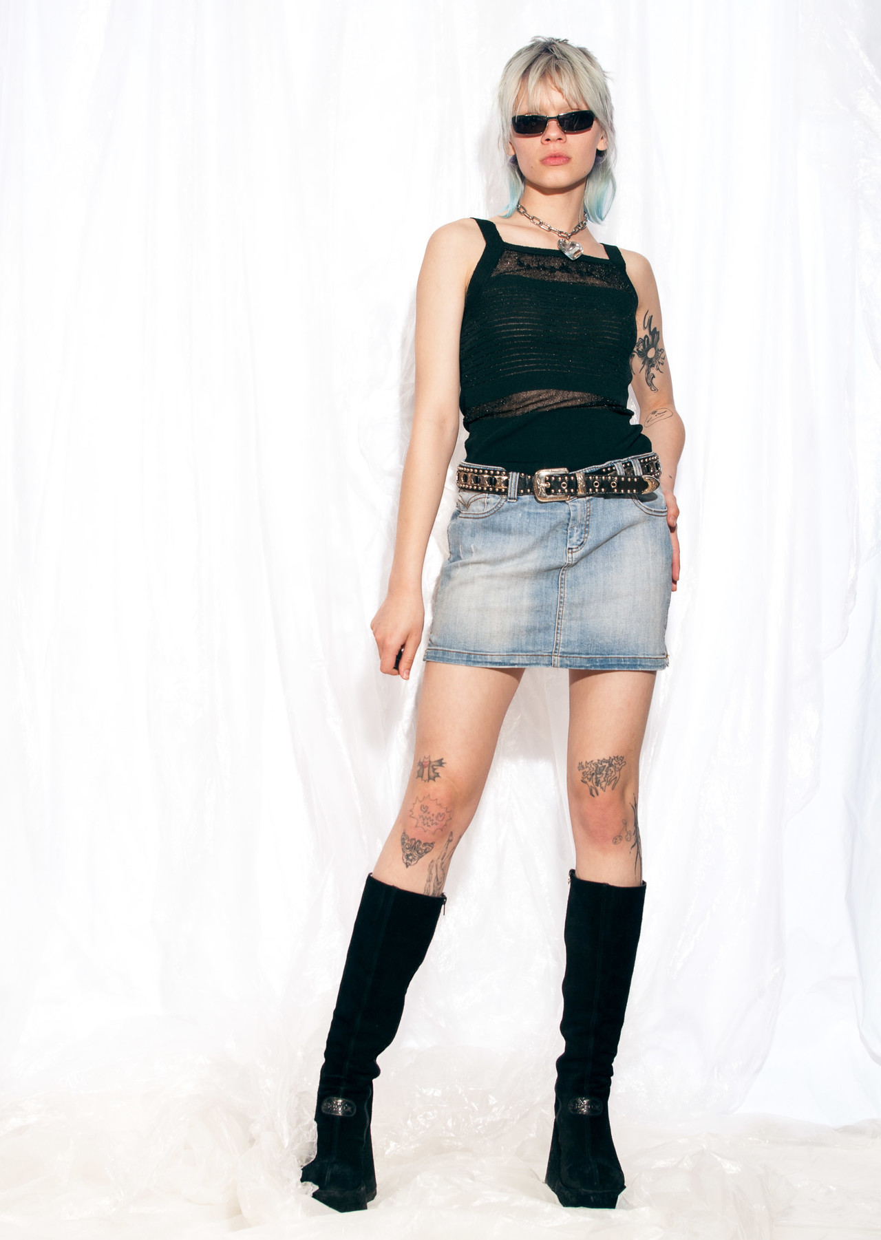 Vintage denim skirt 80s reworked cropped grunge skirt