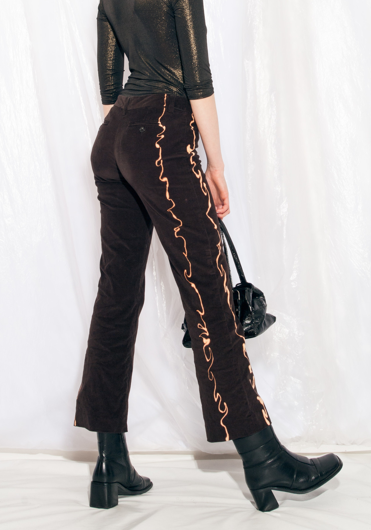 Tags: 00s streetwear, 2000s style clothing, brown cotton pants, corduroy pants, flare trousers, hand-painted, reworked, upcycled, whimsigoth, y2k vintage fashion
